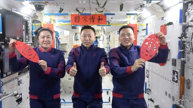 l'équipage de Shenzhou-18 composé de Ye Guangfu, Li Cong et Li Guangsu,