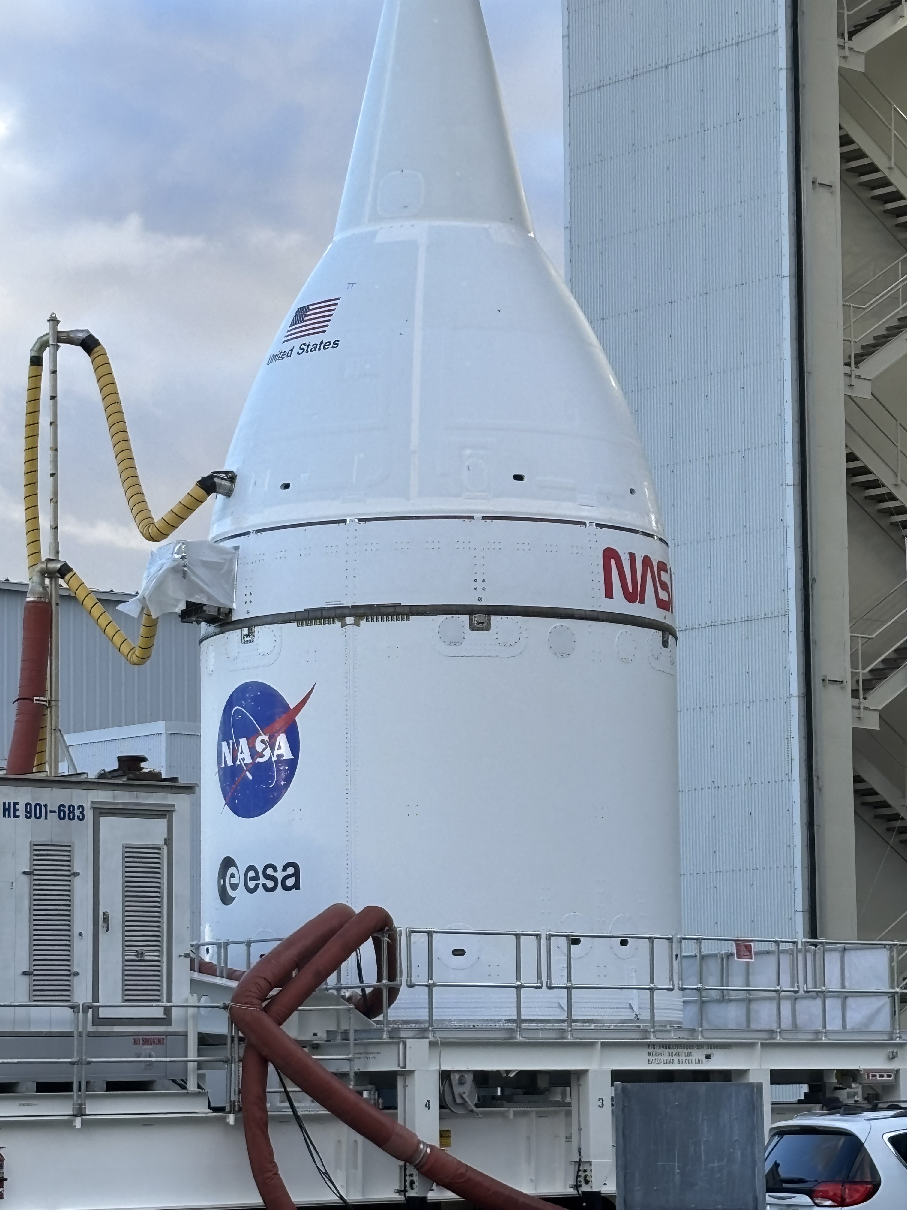 travaux à faire pour préparer Artemis 2: 24 septembre, l'équipage baptise la cabine Orion "Integrity" 18 octobre, Orion est dans le VAB et est assemblé au SL le 24