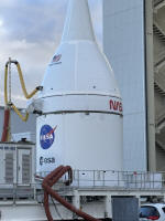 attractif. VAB, mise en place de l'étage supérieur ICP de Boeing et ULA pour le lanceur Artemis 2. Armstrong O&C Building, sortie du vaisseau Orion en partance pour le MPPFF, Multi-Payload Processing Function Facility afin de réaliser les remplissage en ergols. 9 mai, la NASA annule définitivement le Gateway. Les vol Artemis 2 et 3 sont maintenus, mais ce ne sont que des fly-by habité. Artemis 3 devait logiquement être la première vraie mission où 2 des 4 astronautes posaient le pied au sol, mais après s’être docké au Lunar Gateway avec Orion, se transférer dans le Starship HLS et aller se poser et revenir a la Gateway avec HLS, pour rentrer sur Terre avec Orion. Remplacement des plaques métallique recouvrant le déflecteur du LC39B 20 juin, La NASA a testé le moteur RS-25 n° 20001 sur le banc d'essai Fred Haise du centre spatial Stennis de la NASA à Bay St. Louis, dans le Mississippi. Les équipes d'essai ont allumé le moteur pendant près de huit minutes et demie (500 secondes), soit la même durée d'allumage des moteurs RS-25 lors du lancement du SLS pour des missions Artemis vers la Lune. Au cours de l'essai, les opérateurs ont également allumé le moteur n° 20001 à 111 % de sa puissance, soit la même poussée nécessaire pour lancer en orbite le SLS transportant la sonde Orion. Cet essai de pleine durée était le premier depuis que la NASA a terminé les essais de certification des nouveaux moteurs RS-25 de série en 2024. L3Harris Technologie, ex Aerojet Rockedyne fabrique ses moteurs pour le SLS. Le moteur 20001 est le premier du genre a être fabriqué depuis la fin du programme STS en 2011, il propulsera le SLS Artemis 5. Le tir d'essai a eu lieu quelques jours avant le 50e anniversaire du premier essai du moteur principal de la navette spatiale à Stennis, le 24 juin 1975. Ce moteur portait le numéro de série 0001. Le nouveau moteur RS-25 est désigné n° 20001. 26 juin, Nortrop Grumman teste au banc le booster SRB BOLE (Booster Obsolescence and Life Extension), le plus grand propulseur à propergol solide segmenté jamais construit. L'essai se déroule parfaitement jusqu'à T + 1mn 43 s lorsque la tuyère est arraché du booster. Ce dernier finit normalement sa propulsion jusqu'à T+ 2 mn 36s. Le moteur BOLE est destiné à équiper la version Block 2 du SLS à partir de la mission Artemis IX. Doté d'un carter composite non peint et d'un câblage en cuivre pour la protection contre la foudre, le propulseur a généré plus de 1,8 million de kilos de poussée à l'allumage et a fonctionné pendant environ deux minutes et 20 secondes. Des capteurs surveillaient des centaines de paramètres grâce à 763 canaux de données, et un système d'extinction au dioxyde de carbone a permis de sécuriser le propulseur après son allumage. Le moteur BOLE DM-1 s'est avéré être le deuxième moteur-fusée à propergol solide le plus puissant jamais testé, derrière un propulseur d'appoint de 260 pouces dans les années 1960. Monté sur le côté, le moteur était maintenu par un gros bloc de béton, ce qui l'empêchait d'avancer. Tous les moteurs d'essai du programme sont traités dans une enceinte de montage, éloignée du moteur avant le test. Il s'agit du premier des deux tests de développement du moteur prévus pour BOLE. Lors du test DM-1, le moteur a été refroidi à 15 °C afin de tester sa réponse en conditions ambiantes. D'autres tests évalueront les performances du BOLE à froid et à chaud, si le bloc SLS 2 reste intégré au programme Artemis. L'enveloppe du BOLE est fabriquée en fibre de carbone, il est plus grand que le RSRMV (Redesigned Solid Rocket Motor-V) hérités du SLS, mesurant 47,5 m de haut et 3,8 m de diamètre, contre 46,9 m de haut et 3,7 m de diamètre pour le RSRMV. La tuyère a été redessinée, avec un diamètre de 4,4 m, contre 3,9 m pour la buse RSRMV. La tuyère BOLE, fabriquée en matériau composite avec un matériau phénolique en verre brun, comprend également une rallonge de 0,6 m. Le boosters BOLE ont été conçus pour augmenter l'impulsion spécifique de 3,9 % et l'impulsion totale de 11 % par rapport aux propulseurs à cinq segments existants, permettant au bloc 2 d'ajouter 5 tonnes de charge utile par rapport à la prochaine version du bloc 1B du SLS. Pour offrir de meilleures performances, les boosters BOLE utiliseront un propulseur amélioré à base de polybutadiène à terminaison hydroxyle (HTPB), contrairement au polybutadiène acrylonitrile (PBAN)actuellement utilisé sur les propulseurs à poudre. Les améliorations apportées au propulseur BOLE sont le fruit de l'annulation du programme OmegA, lancé alors qu'Orbital ATK était en compétition pour le programme National Security Space Launch (NSSL). La famille Falcon de SpaceX et le lanceur Vulcan de l'United Launch Alliance ont finalement été sélectionnés par l'US Space Force, éliminant ainsi le besoin d'OmegA. Le BOLE est le second plus gros booster à poudre testé, mais dans les années 1960 un autre moteur, le AJ260 avait été fabriqué par Aerojet comme premier étage du Saturn 5 au cas où les moteurs F1 échouent. D'un diamètre de 260 pouces (6,6 mètres), il avait été fabriqué et testé en Floride, à 50 km au nord de Miami et à 22 km de Homestad AFB, amené par bateau à travers un nouveau canal. 2 essais de mise à feu ont eu lieu en septembre 1965 et février 1965, avec un moteur court de 24 mètres produisant 1 800 tonnes de poussé durant 114 secondes. Un 3e essais a eu lieu en juin 1967 avec le booster SL 2 équipé d'une tuyère partiellement immergée délivrant une poussée de 2 900 tonnes. Presque à bout de souffle, la tuyère du booster s'est éjectée, répandant du propergol à base d'acide chlorhydrique sur les zones humides des Everglades, les champs cultivés et les maisons de Homestead. De nombreux habitants de Homestead se sont plaints des dégâts, notamment des dommages à la peinture de leurs voitures et la d