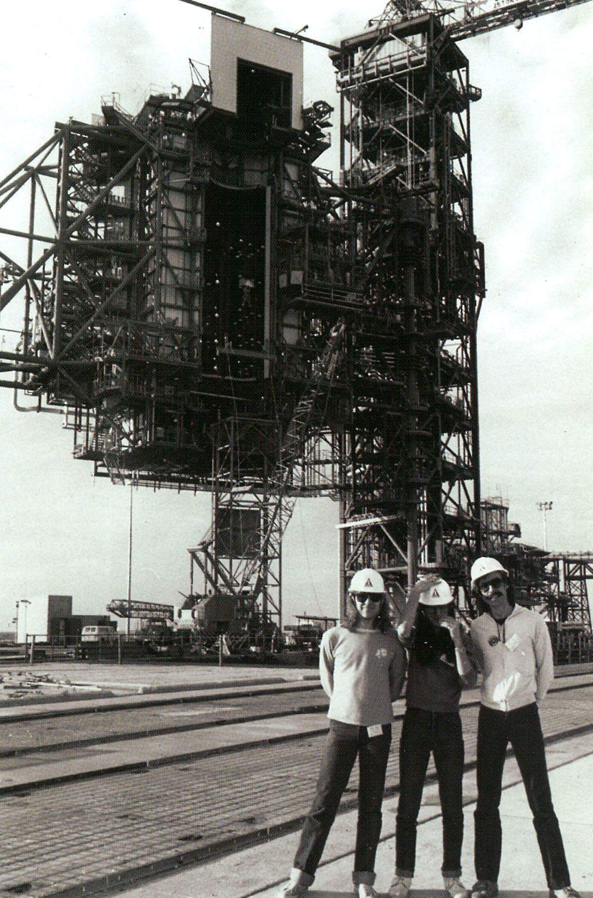 Octobre 1976, des barres métalliques sont fixées contre la plateforme du LUT 2. Elles serviront de support pour la construction de la tour de service rotative.