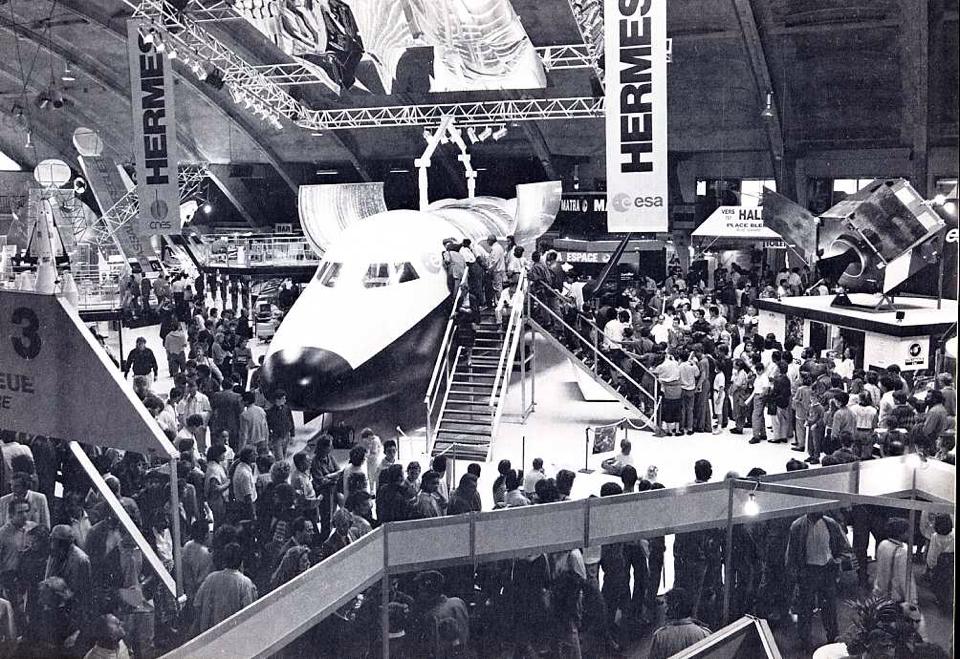 Que reste il du projet Hermés ? Pas grand chose, une maquette. En 1986, le CNES fait réaliser une maquette à l'échelle 1 d'Hermès par la régie des Spectacles en 5 mois, avec le concours financier d'industriels Français (Aérospatiale, AMD BA, ATES, Matra et la SEP) et étrangers (Aeritalia, Dornier, ETCA, Fokker, MBB et Sener). Construite en alliage d'aluminium pour le fuselage, la voilure, les portes de soute, en sandwiches composites en fibre de verre époxy pour les parties carénées, le nez, la cabine, le cockpit et les pods arrières, elle aura nécessité 10 000 heures de travail soit 5 mois avec 20 corps de métier. entièrement démontable, cette "maquette" n'en pèse pas moins de 7 tonnes. En mai 1987, elle est exposé au salon du Bourget à Paris dans le hall de l'ESA, puis à Madrid (septembre), Toulouse (octobre) au salon du SITEF et au CST en novembre où un bâtiment spécialement construit pour elle le "Leonard de Vinci" l'attendait. Hermes au Bourget en 1987, et au CST (Photo C Bardou CNES) En 1988, la maquette voyagera à Strasbourg au mois d'avril, puis à Hanovre en mai au salon aéronautique et à Bordeaux en décembre. Au cours de sa courte vie, le projet Hermes a subi de nombreuses modifications et la maquette a suivit: Fin 1988, la configuration d' Hermès change, un module adaptateur dit de "ressources" est ajouté à l'arrière. Le dessin aérodynamique est légèrement modifié avec notamment une extension des winglets et de la voilure qui s' étend maintenant jusqu' au nez. Il n'y a plus de soute ouverte, un tunnel communique entre la cabine, la soute pressurisées et l'adaptateur. Les portes de soute de la maquette sont soudées et le système de fermeture "neutralisé". La porte latérale d'accès au poste de pilotage a été "dupliquée" sur la maquette, par création d'une nouvelle porte en vis à vis pour permettre une fluidité de passage des visiteurs... Après abandon du projet en 1993, la maquette est mise au rebus au CST et a l'initiative de Yves Gourinat, enseignant chercheur, amené dans la cour de l'ENSICA, l'école nationale supérieures d'ingénieurs de construction aéronautique ENSICA en 1996 face au Mirage 3. Ainsi exposé aux intempéries, la maquette en bois voit sa peinture s'écaillé, son fuselage se salit et pendant la tempête de 1999, elle perdra ses pods arrière, la porte du sas arrière et le nez. Même si il est resté en bon état, le nez ne sera jamais replacé. Un projet de l'AAMA, l'association des amis du musée de l'air est lancé pour une restauration et la mise en exposition de cette maquette au musée de l'air et de l'espace du Bourget. L'association finance le transport depuis Toulouse en camion en mars 2005 sur le site de l'aéroport du Bourget. Malheureusement, la maquette est trop grosse pour le hall de l'espace et construire pour elle un hangar à l'extérieur serait trop cher pour un objet issue d'un programme abandonné dont tout le monde a oublié le nom. La maquette est laissée telle quelle à à l'extérieur des réserves du musée.