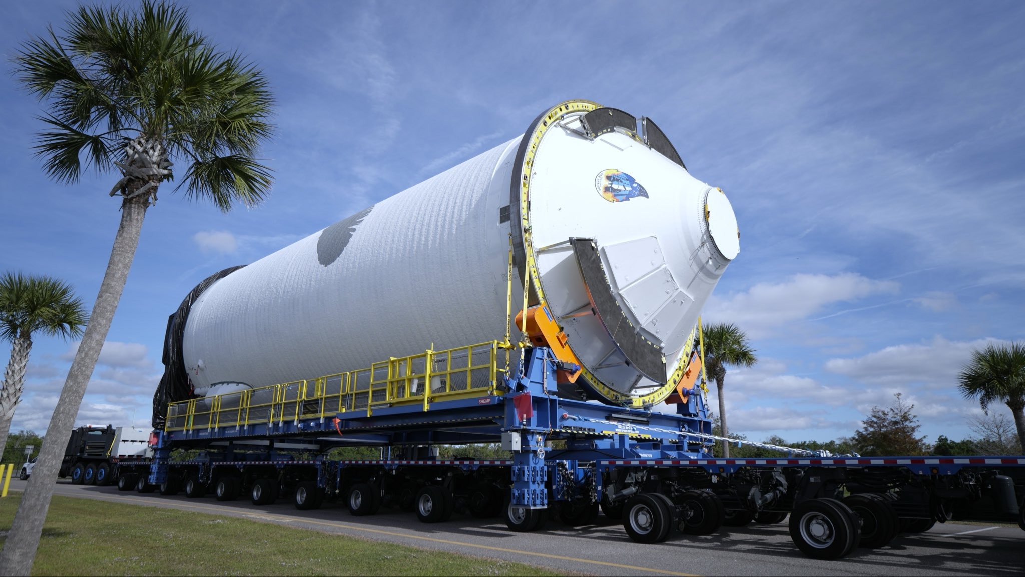 L'étage GS1 du NG2 arrive à port Canaveral. Sur