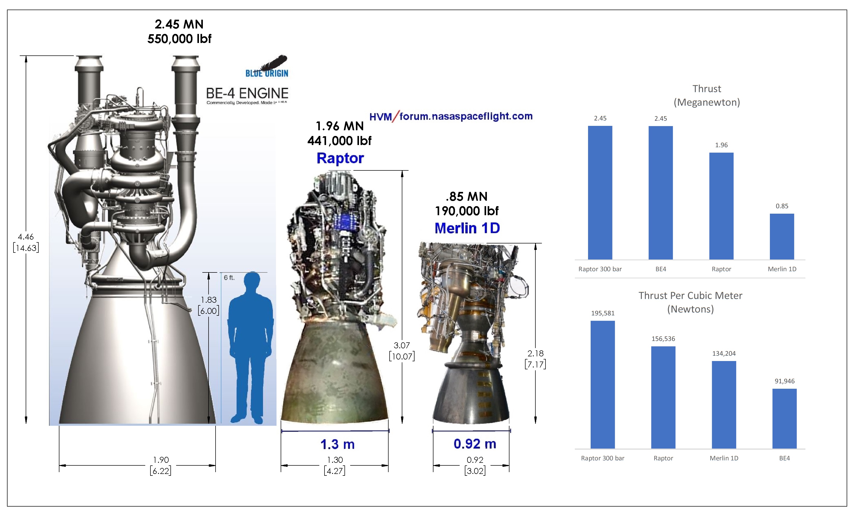 Schéma du moteur Raptor qui équipera le Starship. C'est un moteur à combustion étagée, "full-flow staged combustion" avec 2 pré-brûleur et 2 turbines LOX méthane de 633 bar et 643 bar de pression respectivement. Dans la chambre de combustion, la pression est de 300 bar pour une poussée de 209 tonnes (ips de 334 secondes). Space X prévoit de développer 100 moteurs par an dès 2020. Les prototypes du Starship Mk1 et 2 à Boca et Canaveral auront 6 de ces moteurs pour les tests de saut, 3 optimisés pour un décollage du sol et 3 pour le vide (tuyère plus grosse).. 27 août, le prototype StarShip Hooper fait un saut de 150 mètres à Boca Chica Texas uniquement propulsé par un moteur Raptor (SN6). C'est, selon Space X le dernier essais du hooper. Si tout se passe bien, il deviendra un banc d'essais du moteur Raptor.