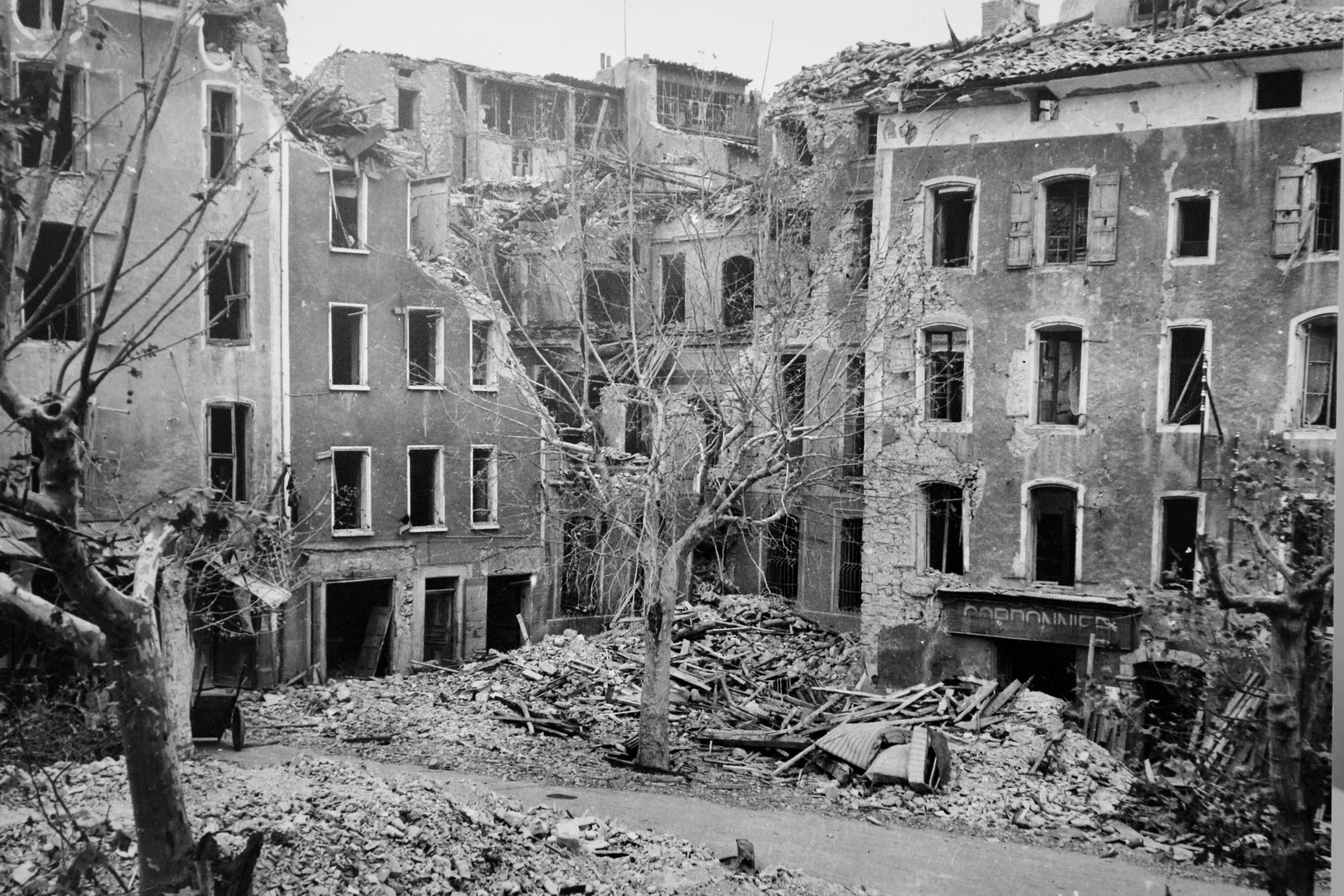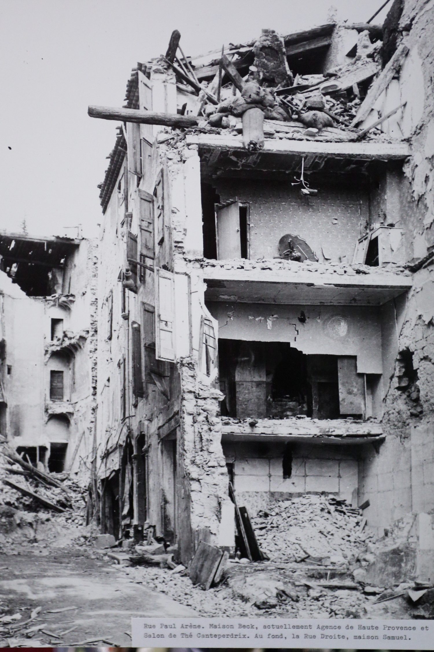 La partie nord de Sisteron a été entièrement soufflé par les bombes, la moitié de la rue Saunerie est en ruine, la porte du Dauphiné n'est qu'un souvenir...