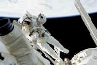 panneaux solaires de la station, mission ISS 4A, sur la structure Z1. L' équipage