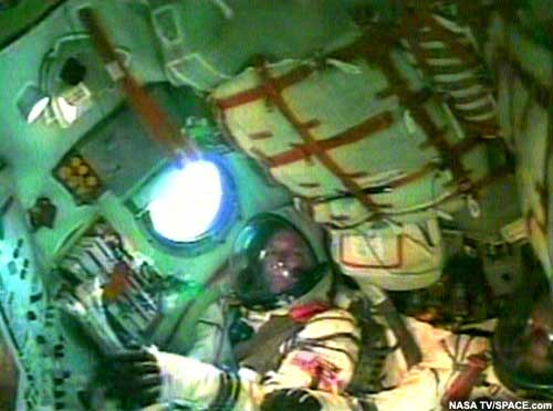 à destination du public notamment les jeunes. Selon le Washington Post, deux scientifiques de la NASA s'étaient opposés au lancement du vol Soyouz, dénonçant les mauvaises conditions de l'équipement médical à bord. Mais la NASA a estimé qu'il n'y avait aucun danger immédiat et a donné son feu vert. Il n'y a aucun risque pour la santé de l'équipage de la Station spatiale internationale (ISS), indique les responsables russes. L'unique problème réel est impossible de ramener de la station un analyseur de gaz américain, dont les indications ne peuvent être exploitées que sur Terre. Cet appareil ne peut être transporté que par une navette américaine. Or, les vols des navettes ont été suspendus après la catastrophe de Columbia le 1er février dernier. Dans les Soyouz, il n'y a pas de place pour embarquer cet analyseur. les renseignements sur l'état de l'atmosphère à bord de l'ISS sont excellents et les appareils russes qui surveillent la composition de l'air n'ont pas besoin d'être ramenés sur Terre. Le 27 octobre, l'équipage n° 7 (Lu et
