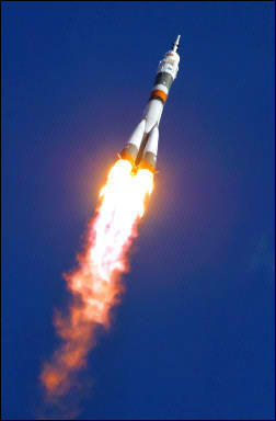 Le 18 octobre, lancement du Soyouz TMA 3 mission Cervantes vers ISS à 5 h 38 TU depuis Baikonour. A bord Michael Foale, astronaute de la NASA qui a déjà volé 5 fois sur le Shuttle (STS 45, 56, 63 et 84). Lors de cette dernière mission, il est resté 4 mois et demi avec l'équipage MIR 23 dans la station russe. Il a notamment réaliser 6 sorties dans l'espace pour tenter de réparer le module Spectr endommagé lors d'une collision avec le vaisseau Progress. Sa dernière mission en décembre 19999 STS 103 a permit de réparer le télescope Huble avec le suisse Nicolier. Foale est le commandant de l'expédition 8. Il est accompagné du cosmonaute russe Alexander Kaleri qui a à son actif 3 vols (Soyouz TM14 en 1992, TM24 en 1996 et TM30 en 2000) totalisant 415 j 3 h et 19 mn dont 19 h 31 en quatre EVA. le troisième homme est Pedro Duque astronaute espagnol de l'ESA qui a déjà volé sur le Shuttle US au cours de la mission STS 95 en octobre 1998.