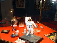 L'exposition "Ils ont marché sur la lune" à la salle des Gontardes a permit de réunir une fois de plus les passionnés d'astronautique et les Tintinophiles. Pierre Emanuel Paulis nous présentait quelques morceaux de sa collection d'objets Apollo. Une maquette d'Ariane 5 de 3 m de hauteur accueillait les visiteurs. La journée "espace" avait pour thème Tintin et les 50 ans de l'album " On a marché sur la Lune " en matinée et l'espace en après midi avec trois conférences signé Pierre Emanuel Paulis, Vladimir Pletser et Jean François Clervoy. Devant une salle à moitié remplie, PE Paulis a présenté un rapide historique de l'aventure spatiale américaine jusqu'à Apollo. V Pletser lui s'est intéressé à à l'exploration des lunes du système solaire avec les missions en cours et future. Enfin, l'astronaute JF Clervoy nous a présenté l'ATV, le cargo européen pour ISS dont il s'occupe à présent à l'ESA. Les conférenciers du jour, un Tinitinophile, PE PaUlis, O Sanguy (Espace mag), JF Clervoy, Le maire de Chabeuil, F Merle, Pt de l'association "26, rue du labrador et V pletser. A coté du stand "Espace magasine", la bouquinerie l'Odyssée, basée à romans qui propose de nombreux ouvrages, livres et revue sur l'astronautique.