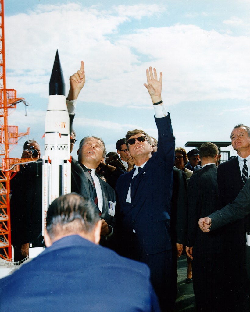 photos montrent néanmoins le président discutant avec von Braun et Mc Morrow.