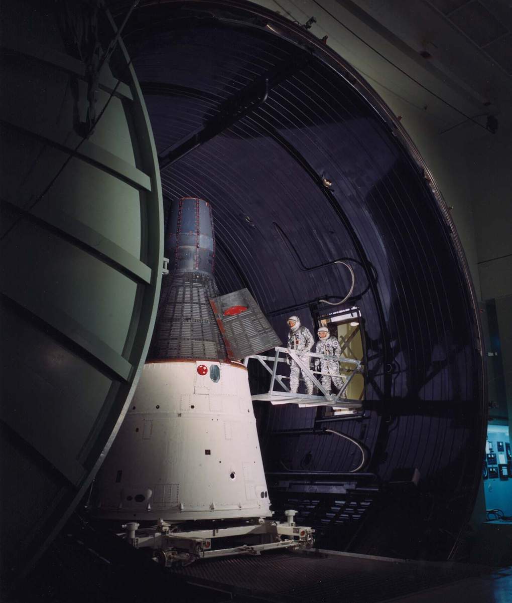 L'ENTRAINEMENT L'accomplissement de chaque vol habité nécessite des centaines d'heures de préparation pour quelques heures passées dans l'espace. Elle démarre dès le jour où l'astronaute intègre son équipe. Dès 1962, une vingtaine de pilotes ont été choisit comme équipages principaux et remplaçant sur les 5 premières missions Gemini. Avec une expérience de 13 à 18 ans dans l'armée comme pilote d'essai et 3000 à 5000 heures de vol, ils allaient participer au programme spatial US sur une période ninimale de 20 mois à plus de 7 ans. Tous étaient titulaires de diplômes, leur age s'étendant de 34 à 42 (Slayton). La phase initiale de l'entrainement dure 6 mois et comprend des cours comme à l'école sur la géologie, l'astronomie, des cours de vols, d'engénéring, d'informatique et de météorologie. La seconde phase est un enseignement plus spécifique comme les lanceurs spatiaux, les expériences de vol, les tenues de vol, les sorties dans l'espace, la navigation et le guidage du vaisseau, les communications, les systèmes électrique, les planning de vols, les opérations de lancement et de récupération. Cette seconde formation peut durer de 6 mpis à 7 ans. Beaucoup de procédures écrites pour Mercury ont été adopté pour Gemini. La phase finale intervient 6 mois avant le vol au moment de la désignation de l'équipage. cet entrainement se déroule en partie au centre des vols habités de Houston dans le Gemini Misson Simulator. 6 semaines avant le départ, l'équipage arrivent au Cap Canaveral pour les dernières vérifications de leur vaisseau et terminer leur entrainement en simulateur. SIMULATION La phase de lancement fut d'abord simulée dans le Dynamic Crew Procedures Simulator au MSC puis dans le Gemini Mission simulator. Il était situé à l'origine à Dallas chez Ling Temco Vought. Dans ce simulateur sont testé toutes les phases du lancement jusqu'à la mise en orbite, de même que les situations d'urgence. Il reproduit la réplique parfaite de l'intérieur de la cabine. Pas moins de 80 scenarii de travail sont proposés aux astronautes. La centrifugeuse du Naval Air Development Center Aviation Medical Acceleration Lab , près de Johnsville en Pennsylvanie est utilisée pour simuler le stress du lancement et de la rentrée de l'équipage. Elle est utilisé dès juillet 1963 pour évaluer le tableau de bord de la future cabine. Pour simuler la mission elle même, les astronautes utilisent le Gemini Mission Simulator de Mc donnell à St Louis qui est le seul simulateur qui ressemble à la vrai cabine Gemini. Il permet une bonne visualisation du déroulement de la mission avec des écrans afficheurs, des sons réels et des mouvements. Chaque intérieur du simulateur a été confectionné pour tous les équipages et leur morphologie, basé notamment sur le travail de l'astronaute Grisson. Comme pour Mercury, il est très tôt intégré dans le programme de développement du vaisseau biplace. Le premier cockpit réalisé est d'ailleurs baptisé "Gusmobile". Le problème est que Grisson est aussi le plus petit des astronautes. Young et Stafford, plus grand ne pouvait rentrer dans la cabine et fermer l'écoutille sans toucher ! Dans l'été 1963, le cockpit est redessiner pour accepter tous les nouveaux astronautes. Le simulateur est modernisé et envoyé à Houston dans l'été 1964. Un second exemplaire est envoyé au Cape qui sera opérationnel en novembre. Les équipages réalisaient leur simulations en bras de chemise avant d'être équipé de leur tenues de vol complète. comme les méthodes d'entrainement progressaient, le simulateur a été relié au centre de contrôle MCC avec les directeurs de vol manipulant les consoles comme lors d'un véritable vol.