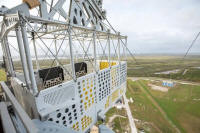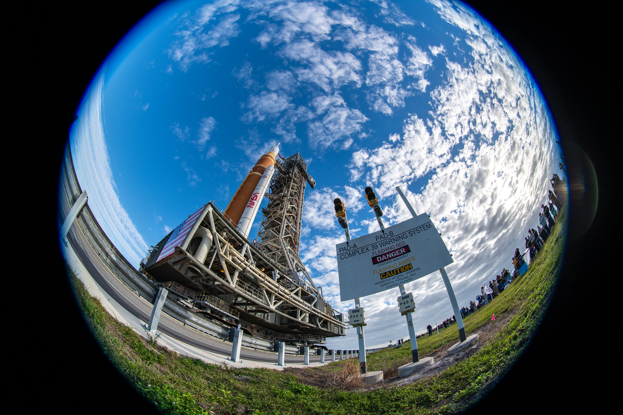 17 janvier, rollout, au petit matin du SLS Artemis 2 vers le LC39B qu'il rejoint en 12 heures porté par le Crawler CT 2. 24 janvier, test du système d'évacuation en urgence du pad avec les paniers installés en haut du ML. 4 paniers sont installé sur le coté de la tour du ML au même niveau que le bras d'accès de l'équipage au module Orion. « L'intention est de fournir un autre moyen de sortir pour l'équipage et l'équipe de fermeture en cas d'urgence. Chacun de ces paniers glisse sur un câble métalliques qui se connecte au terminus du pad, une zone proche du périmètre du tampon où les paniers vont atterrir après avoir quitté la tour de lanceur.