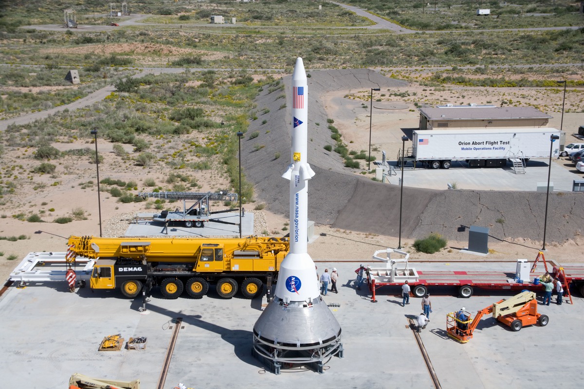 8 juillet, Wallop Island, en Virginie, la NASA teste le Max Launch Abort System (MLAS), une évolution du système original LAS étudie pour le programme Constellation. Le MLAS combine le BPC, Boost Protection Cover du module de service monté sur le système d'éjection avec les moteurs du module de commande. La version finale du MLAS pèse 20 tonnes pour 10 m de hauteur. Quatre moteurs à poudre Terrier Mk70 assure l'envol. Deux parachutes d'orientation attaché en haut de la coiffe permettent de réorienter le véhicule pour la rentrée assurant la bonne séparation du bouclier thermique. Une fois stabilisé, le module de commande est éjecté. Des moteurs assure sa stabilité pour l'atterrissage.