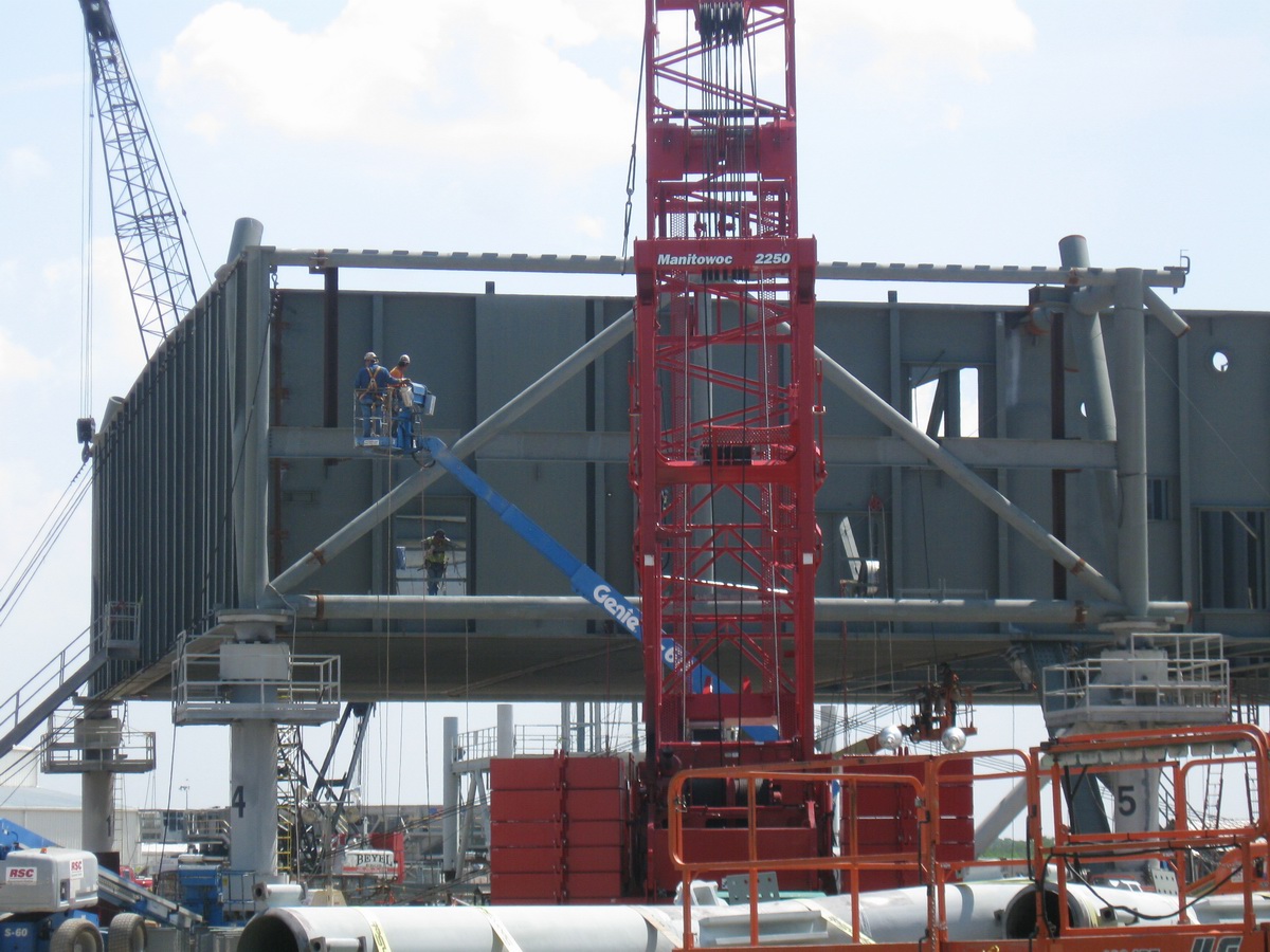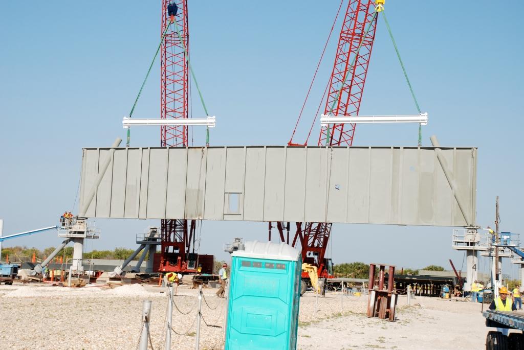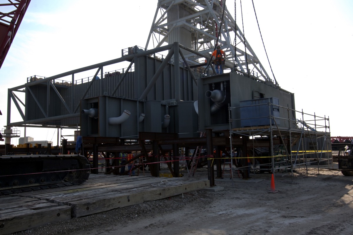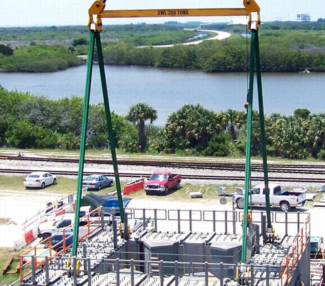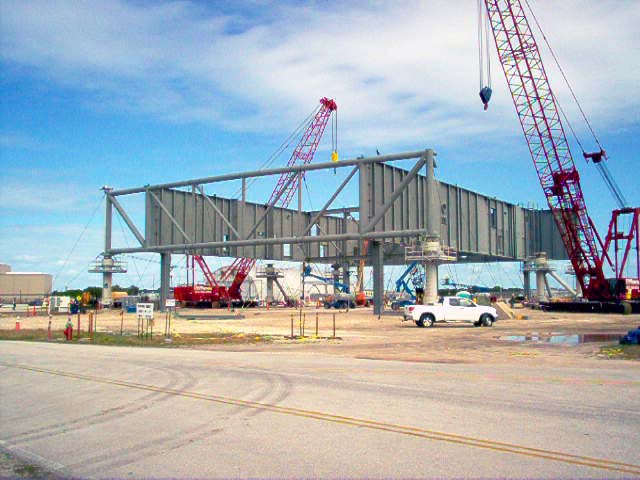 supérieur) et 285 (module de service Orion). C'est Hensel Phelps d'Orlando qui en assurera la construction grâce à un contrat avec la NASA passé en mai 2008 pour un montant de 29 897 000 $. Ivey Construction fait partie des équipes de Hensel Phelps pour la construction du ML. Il assurera la fabrication des 1300 tonnes de structures en acier de cette tour de 118,5 m de hauteur au sol avant de les assembler à l'aide d'une grue. Chaque section qui pèse entre 65 et 180 tonnes est complète et équipée d'escaliers, cage d'escaliers, barrières, salles électriques, et cage d'ascenseur. Iveys Construction avait réalisé les tours du LC 41 des Titan, le VIB du SLC 41 pour les Atlas, la rénovation des tours du SLC 36, l'installation des grues 350 tonnes dans le VAB, le hangar SSME PF, les tours paratonnerre du LC39B, le SLC3 de Vandenberg pour les Atlas 5 entres autres.