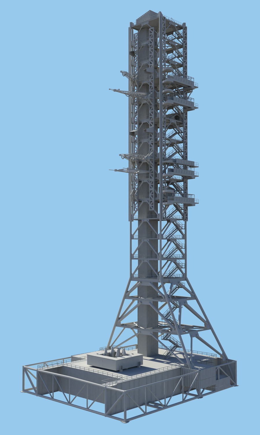 bras d'accès de l'équipage est au niveau 285. Contrairement au ML Saturn 5, ce bras coulisse et rentre dans la tour au moment du
