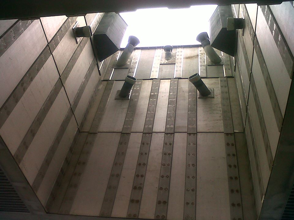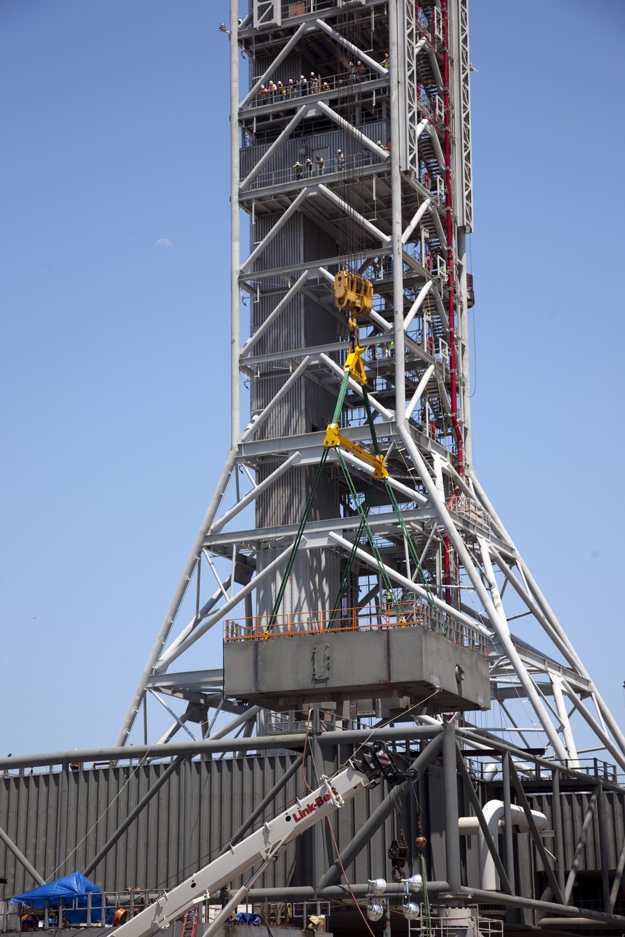 machinerie des ascenseur au niveau 345. Les bras de service sont au