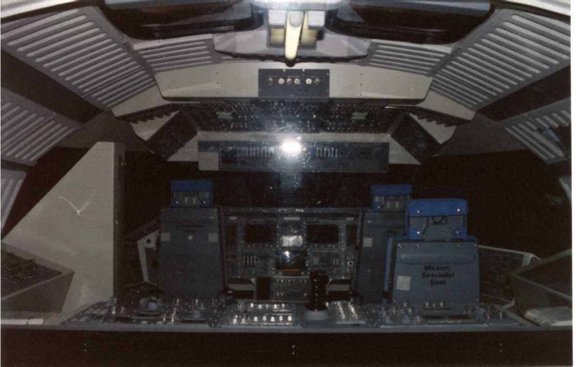 Shuttle qui sera exposé en permanence. le 25 janvier 1993, "Ambassador" commence à être démonté pour son envoie en Coré. La firme Guard Lee (Apopka Floride) est chargé de construire une autre réplique pour la fin de l' année début 1994, dont le nom sera choisit par un collège de Floride dans l'automne. Voici quelques vues de cette maquette prise en 1992 par un ami de Sisteron. L'intérieur d'Ambassador avec le poste de pilotage. Comme pour Explorer, la soute est chargée d'une palette avec un satellite de type Westar.