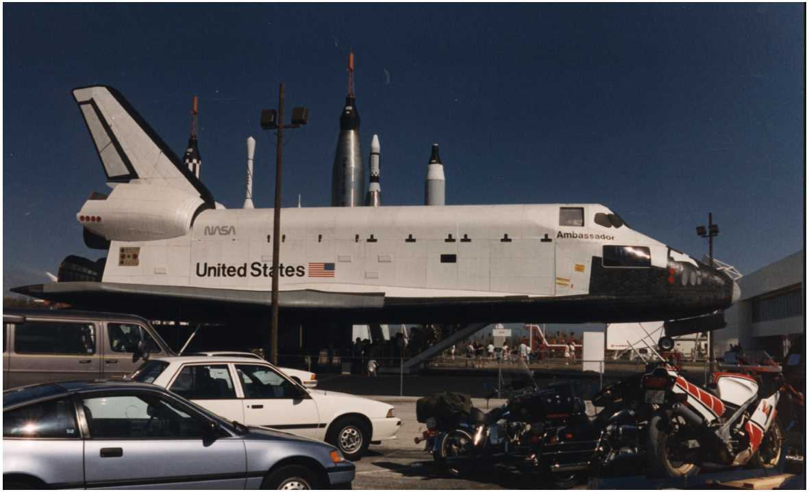 "AMBASSADOR" EN EXPOSITION Décembre 1990, le premier modèle d'un Orbiter est mis en exposition devant le KSC Visitor, le spaceport du centre spatial de Floride. Nommé Ambassador, il a été construit par Guard Lee and Co, en 22 morceaux et transporté au KSC par camions. Cette maquette restera au Spaceport pendant un an. En 1992, il est prévu que