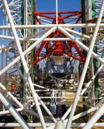 bas par des pistons, le train part de l'avant et bascule à la verticale vers