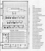 Face à un mur chargé d'écrans et de voyants, elle comporte cinq rangées de