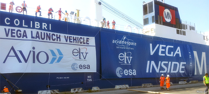 Arianespace prévoit 11 lancements cette année dont 6 Ariane 5, 5 Soyouz dont 2 depuis la Guyane et le premier tir du Vega. Sur la ZLV, les techniciens s'affairent au montage des étages factices du lanceur de démonstration depuis novembre de l'année dernière. Enfermé dans le portique de la ZLV, le lanceur est presque complet avec l'étage P80, le Zefiro 23 et le Zefiro 9 en second et troisième étage. Les trois étages sont des étages inertes mais qui représentent en taille et en masse les étages de vol. Au sommet se trouve l'Attitude and Vernier Upper Module (AVUM), le seul alimenté en ergols liquide depuis la mat ombilical. Cet étage à MMH et N2O4 servira pour l'insertion en orbite. 9 février, la charge utile factice représentant un satellite est enfermée dans les 2 demi coiffe dans le bâtiment S3B du CSG. Les charges utiles sont amenées dans le S2 et S4 pour les opérations d'armement des pyros et le remplissage en ergols et dans le S3 pour la pesée et l'encapsulation. La coiffé fabriquée par RUAG Space en Suède mesure 2,6 m de diamètre et 7,2 m de hauteur et pèse 470 kg. 15 février, la coiffe est amené en ZLV et mis en place au sommet du lanceur. Avril, la maquette du lanceur termine ses tests mécanique en ZL, prouvant notamment que le lanceur pouvait résister au vents les heures précédent son décollage. Autre travail important, les tests de ventilation et thermique sous le climat de Guyane, l'alignement de la plateforme inertielle et la déconnection des ombilicaux. Un décompte sans remplissage des réservoirs a été réalisé ainsi qu'une simulation de décollage après retrait du portique d'assemblage. Octobre, les premiers éléments du lanceur Vega de vol quitte l'Europe pour rejoindre la Guyane. Après des semaines de vérifications, l'étage Zefiro 23 et 9 et le moteur AVUM quitte l'usine de Avio en Italie pour rejoindre le bateau Colobri à Livorno Harbour. La coiffe construite par la Suisse, l'inter-étage construit par l'Allemagne et le satellite LARES seront chargés à leur tour pour un départ le 6 octobre. Après une traversée de 12 jours, l'ensemble sera déchargé au de Cayenne et rejoindra le CSG ou l'attend le P80 dans le BIP.