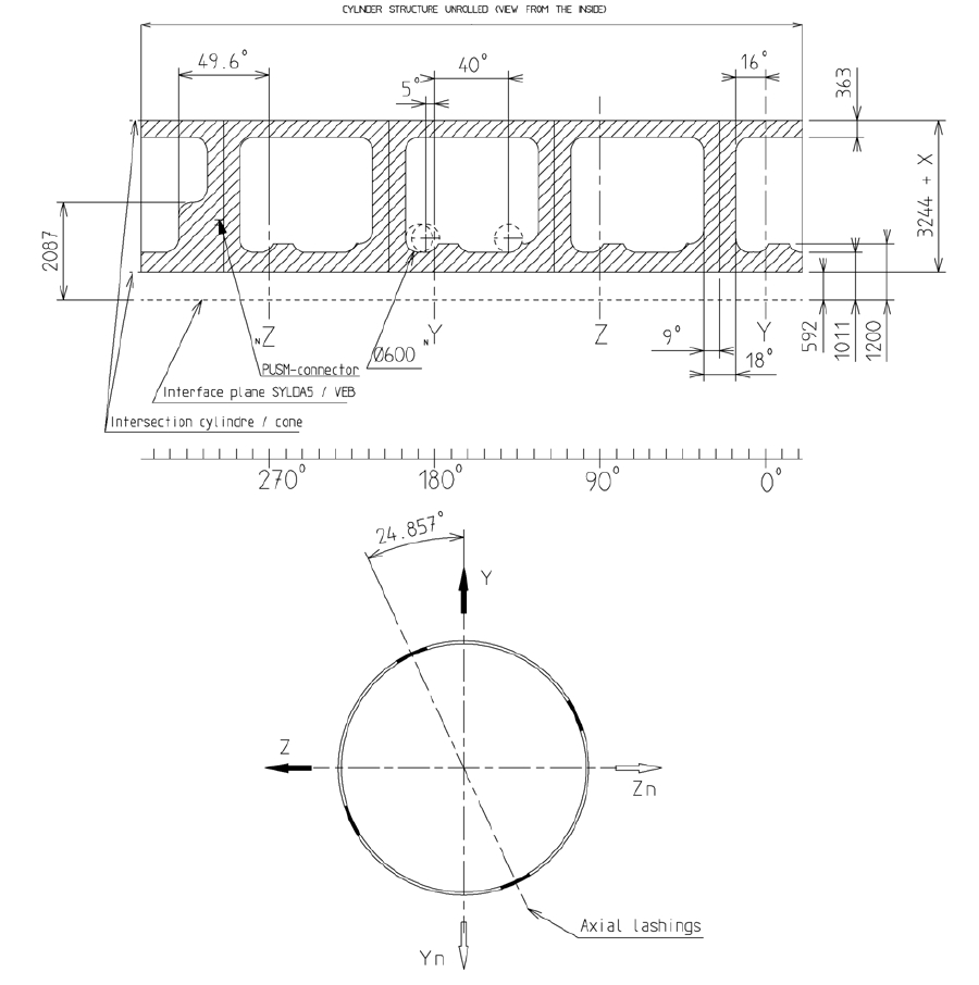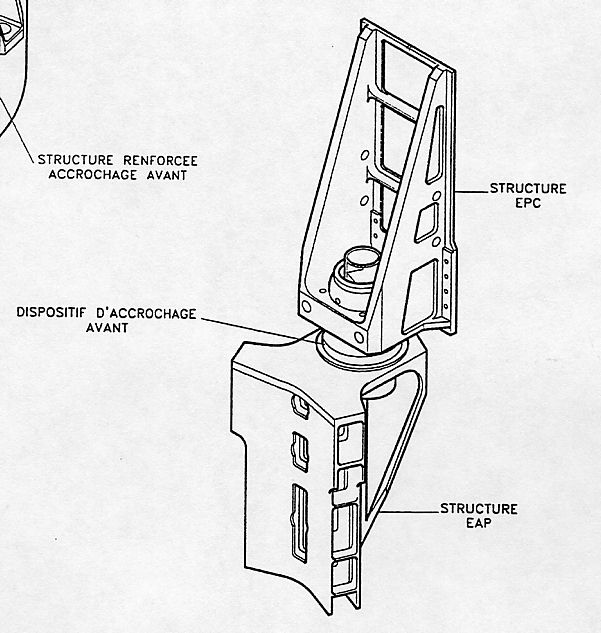 avec, en bleu les zones pour les portes d'accès aux charges utiles et