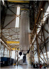 lanceur mesure 51,4 m (version Ariane 5G) pour une masse de 746 tonnes.