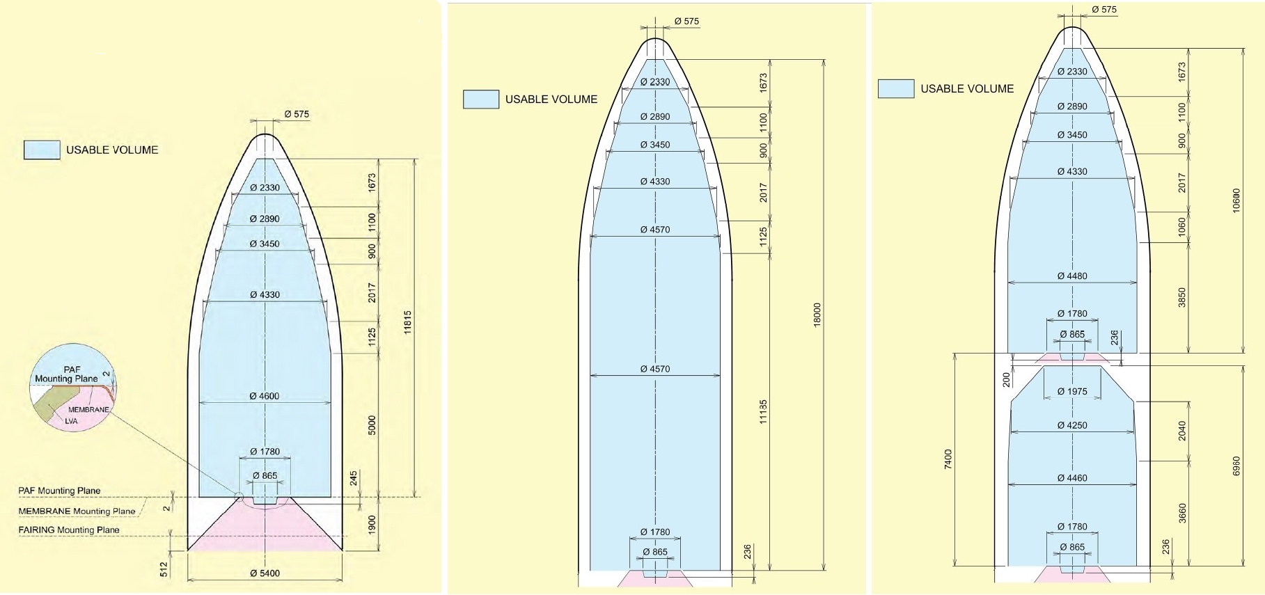DLS & COIFFE Le Sylda ou DLS, Dual Launch Structure de 4,5 m de diamètre qui protège les satellites avant largage est disponible en 3 hauteurs: 7,8, 8,8 et 9,8 mètres. Il est posé sur le LVA Launch Vehicle Adapter lui posé au dessus l'étage supérieur. Comme pour Ariane 5, toute une série d'adaptateur charges utiles, les PAF, Payload Adaptator Fitting a été développé pour Ariane 6. Plusieurs adaptateurs/dispositifs de séparation standards disponibles assurent les interfaces entre le lanceur et les satellites. Développé par RUAG Space Cie, ils se composent d'une structure adaptateur, d'un ensemble de serrage à bande avec son jeu de supports, du jeu de ressorts de séparation et du support ombilical fixé à la structure. Les diamètres de la bande de serrage disponibles sont de 381, 432 et 610 mm et l'interface LV (lanceur) - S/C (satellite) peut être soit boulonnée (comme pour l'anneau SSASAP5) soit au niveau de la bande de serrage (comme pour les S/C plus grands). Pour le diamètre de 937 mm, l'anneau actif 937 (AR 937) d'Airbus DS est disponible. Ces adaptateurs ont leur cablage électrique necessaire pour les liens ombilicaux, les ordres de séparation, la télémétrie et les transmission de données. Il en exsite 4 principaux, le PAS 381 SPAS 432 S, PAS 610 S et AR 937.