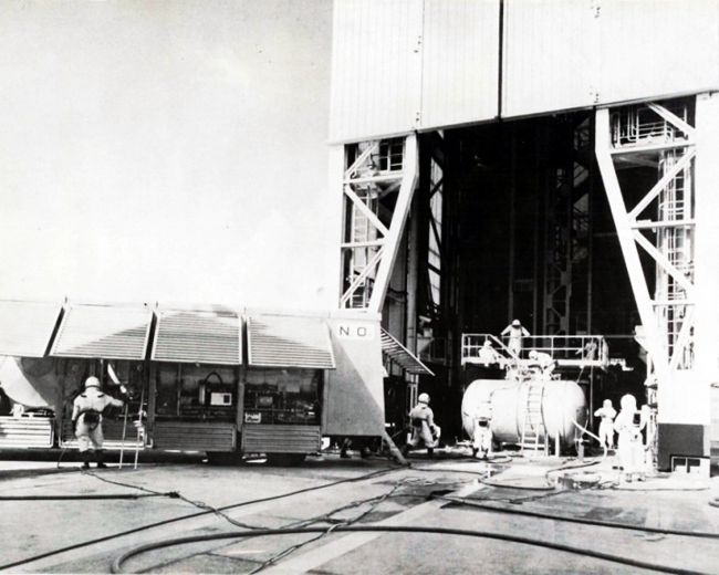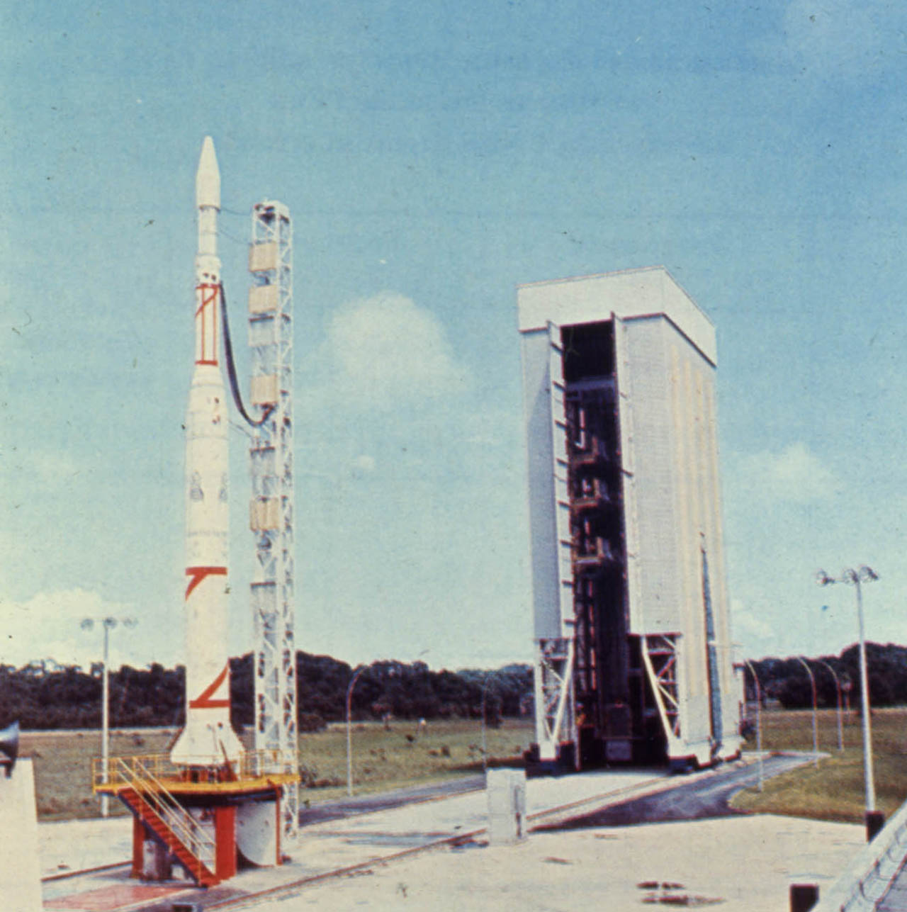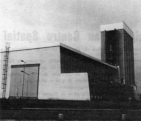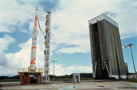 lancement est dans le prolongement du hall d' assemblage. La tour de montage est
