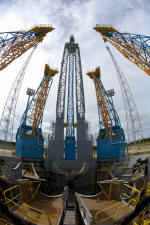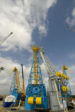 sera assemblé à l'horizontale et amené sur le pad tiré par train sur