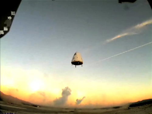 6 secondes avant le toucher au sol à 1000 m d'altitude, le New Shepard a réalisé une dernière manoeuvre de freinage évitant le crash au sol, manoeuvre visant à poussé les limites de performances du lanceur.