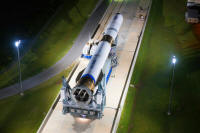 2 février, Blue Origin vient de réaliser le tout premier essai de feu de moteur BE-4 au stand d'essai historique 4670 à Huntsville. Les ingénieurs continuent également à tester les moteurs BE-4 dans nos installations au Texas. Le moteur BE-4 produit 550 000 livres de poussée et est lee moteur le plus puissant à ce jour de Blue Origin. 12 février 2024, le premier étage "pathfinder" New Glenn et un simulateur de second étage sont arrivés sur le complexe de lancement LC 36 à Cap Canaveral en vue d'essais du lanceur et des systèmes sol. Il s'agit d'une représentation grandeur nature et poids du lanceur à utiliser pour les contrôles d'ajustement et la formation au transport. Le Pathfinder du premier et du deuxième étage, qui comporte un véritable réservoir, se trouve toujours au hangar du LC-36. Le 14 février, le lanceur est de retour au hangar d'intégration.