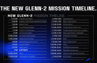 Le 13 janvier, le décompte se déroule normalement avec le remplissage des réservoirs des seconds et premier étage en hydrogène et méthane à T+4h30 et T-3h 30. Le remplissage en LOX débute à T-4h et dure jusqu'a T-60mn, les compléments de plein se feront jusqu'à T-0. A T-20mn, ce sera le dernier point météo, le Go poll, T-10 mn et la phase finale du décompte à T-4 mn. T-2mn 30s, pressurisation des étages, T-1mn 30, passage sur alimentation interne. Le système de déluge est enclenché 20 secondes avant l'allumage du premier étage. Un nouveau T-0 est annoncé à 5h52, puis plusieurs fois dans la nuit avant que Blue Origin se résigne à annuler le lancement. "Nous abandonnons la tentative de lancement pour résoudre un problème de sous-système du véhicule qui nous conduirait au-delà de notre fenêtre de tir», a indiqué Ariane Cornell, une dirigeante de Blue Origin". Selon des sources, le problème principal est probablement dû à de la glace qui obstruait l'une des lignes de ventilation qui évacuent le gaz pressurisé du lanceur. Plusieurs tentatives ont été faites pour faire fondre la glace, mais ces efforts n'ont pas été couronnés de succès, ce qui a nécessité l'annulation du lancement. De plus, il semble qu'il y ait eu un problème avec au moins une des unités auxiliaires de puissance APU qui fournissent de l'énergie au lanceur après l'arrêt des moteurs. L'une des principales fonctions de ces unités est d'alimenter le déploiement des pattes d'atterrissage nécessaires pour réaliser un atterrissage en douceur sur le navire-drone de la société, Jacklyn. 14 janvier, Blue Origin annonce une nouvelle tentative pour jeudi 16 janvier, à 1h du matin, avec une fenêtre de 3 h et une météo à 90% favorable. La cause du report de lundi est bien due à la formation de glace dans une conduite de purge d'un groupe auxiliaire de puissance qui alimente certains des systèmes hydrauliques. 16 janvier, le décompte se déroule sans problème, mais un "hold" est déclenché à T-20 mn à 5h46 TU pour un problème de refroidissement d'un moteur BE-4. Le décompte reprend à 6h06 à T-30 mn pour un T-0 à 6h35. 6h26, nouveau "hold" à T-11 mn, le décompte reprend pour un T-0 à 7h03, un bateau est dans la zone d'exclusion. Les "rains Birds" entrent en action 22 secondes avant le T-0, inondant la table de lancement et la fosse avec le déflecteur. 7h03, T-5 secondes, les 7 moteurs BE- s'allument, le lanceur est libéré et monte lentement, la tour est dépassée au bout de 10 secondes. Max Q est passé à 1mn 40s. MECO à T+3mn 09, séparation et allumage du second "étage à T+3mn 24s, éjection de la coiffe T+3mn 55s. Selon Blue Origin, la télémesure du premier étage a été perdu au moment du "rentry burn" à T+7mn 50s, lors de la descente à 25 km d'altitude et à 6896 km/h. Le second étage réussit parfaitement sa mission, l'injection en orbite à 160 km d'altitude et à 28.800 km/h de la charge utile "Blue ring". «Je suis incroyablement fier que New Glenn ait atteint l'orbite dès sa première tentative», a déclaré Dave Limp, PDG de Blue Origin. «Nous savions que l'atterrissage de notre booster, So You're Telling Me There's a Chance , était dès le premier essai un objectif ambitieux. Nous apprendrons beaucoup d'aujourd'hui et réessayerons lors de notre prochain lancement ce printemps. Merci à toute la Team Blue pour cette étape incroyable. Plusieurs lanceurs sont en production pour assurer dans les prochaines années les commandes. Les clients incluent, entre autres, la NASA, le projet Kuiper d'Amazon, AST SpaceMobile et plusieurs fournisseurs de télécommunications. Blue Origin a été certifié le New Glenn auprès de l'US Space Force pour le programme National Security Space Launch (NSSL) afin de répondre aux nouveaux objectifs de sécurité nationale. 2025 21 avril, le second étage du New Glenn, le GS2 est installé sur le LC36 pour un tir statique le 24 durant 15 secondes en préparation du second vol prévu au milieu de cette année. Pour ce second la poussée des moteurs BE-3U a été augmentée de 78,4 à 79, 4 tonnes. L'étage GS1 du second vol est sur le campus Explora park de Blue Origin en attente d'être amené au hangar d'intégration et assemblé au GS 2 en vue de test avant le vol. NG2 devrait embarquer la mission ESCAPADE de la NASA vers Mars. BO a en commande les constellations de satellites BlueBird et Kuiper ainsi que des vols de test des systèmes de l'atterrisseur lunaire habité Artemis de Blue Origin, le Blue Moon MK2. Septembre, Blue Origin fait le point sur le vol NG2: La charge ESCAPADE est à Astrotech et l'étage GS1 se dirige vers le LC36 début octobre. Le tir statique aura lieu mi octobre. Accueil de Mike Haridopolos, membre du congres, représentant de Floride à Rocket Park chez Blue Origin. ESCAPADE, Escape and Plasma Acceleration and Dynamics Explorers, "Blue" et "Gold" 2 sondes spatiales construits par Rocket Lab pour la NASA et UC Berkeley Space Sciences Lab, pour étudier l'interaction du vent solaire et du plasma avec la magnétosphère de Mars. Aout, BO prévoit le lancement de 12 New Glenn par an et 8 en 2025. Le prochain vol SN002 est crucial et le plan tombe à l'eau si la récupération de l'étage GS1 échoue. Le planning repose sur un nouveau vol de SN002 en janvier, la mise en service de SN003 en février, et des vols bimensuels pour chaque lanceur jusqu'à la fin de l'année. 8 octobre, l'étage GS1 est amené sur le LC36. L'étage SN002 a été baptise "Never Tell Me The Odds", Ne me dites jamais les probabilités. 29 octobre, rollout du lanceur NG2 vers le pad 36 pour un est statique. Il a lieu le 30 et selon Dave Limp de BO, nous avons étendue la durée du test pour simuler la séquence de retour au sol du l'étage le "landing burn" en éteignant les moteurs non orientables après les avoir ramenés à 50% de puissance et éteignant les moteurs extérieurs orientables en les réduisant 