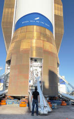 L'étage GS1 du NG2 arrive à port Canaveral. Sur
