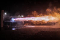 propergols et son tir statique le 24. Un des 3 moteurs Raptor n'est