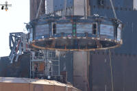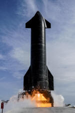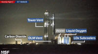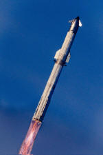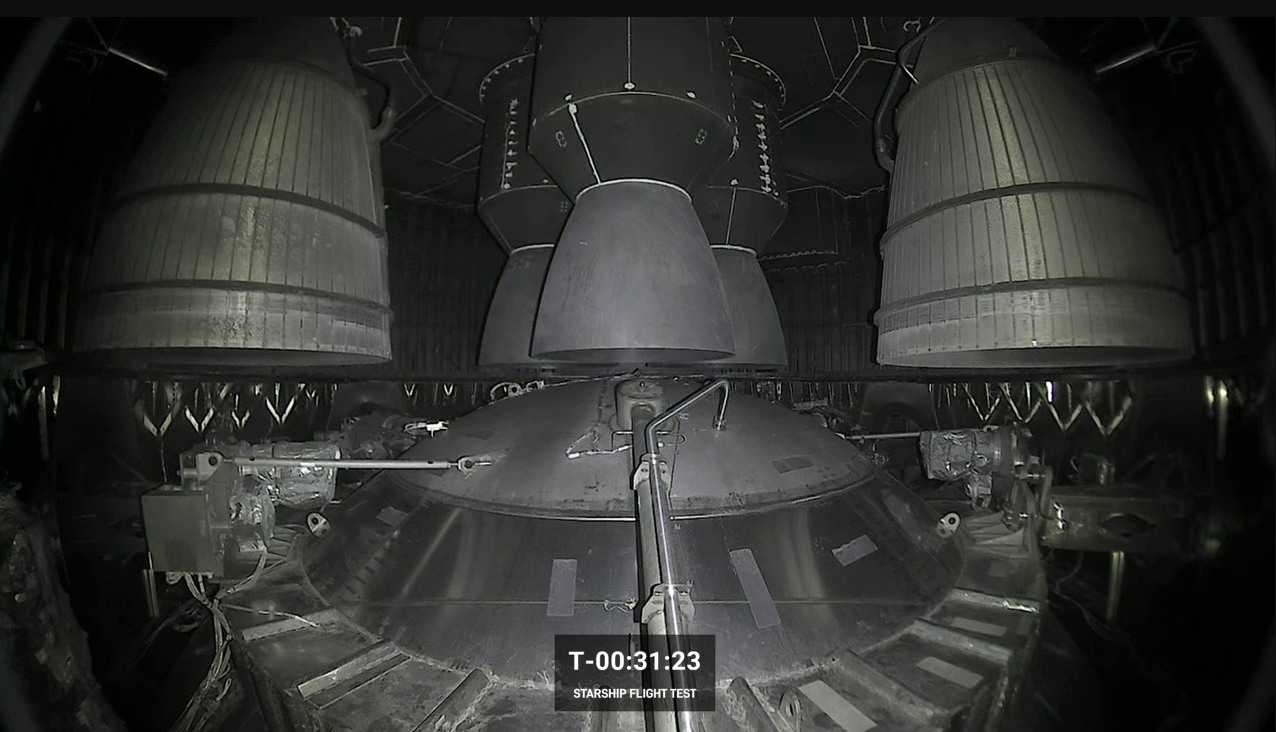 tir statique sur le pad 1. IFT 11 Le 11e vol test du Starship est réalisé le 13 octobre par le booster B15, second vol, qui propulse le Ship S38. C'est à la fois le dernier vol d'un Booster V2 et d'un Ship V2 et ainsi le dernier du pas de tir 1 de Boca-Chica dans sa configuration actuelle. L'objectif principal de ce vol reste, comme pour l'IFT-10, la rentrée atmosphérique, avec beaucoup d'expériences conduites sur le bouclier thermique, notamment le retrait de tuiles par groupe de 4 ou 5 à des endroits sensibles, c'est à dire au-dessus des réservoirs. L'ascension se déroule parfaitement, avec 33 moteurs allumés sur 33 pour le premier étage; par la suite, un des treize moteurs ne s'est pas rallumé pour le boostback burn mais a réussi à s'allumer après la descente menée avec le même angle d'attaque que pour l'IFT-10 pour l'amerrissage. L'amerrissage est réalisé avec 5 puis 3 moteurs, afin de préparer le schéma opérationnel de la prochaine version : des moteurs ne pouvant pas s'orienter, de la couronne centrale, ont permis une décélération plus forte, économisant ainsi des ergols. Le Ship 38 a réussi son ascension, puis a déployé avec succès les 8 simulateurs Starlink, de manière plus polissée que lors de l'IFT-10, sans qu'aucun ne heurte la porte au passage. La démonstration de réallumage d'un Raptor central dans le vide s'est ensuite bien déroulée. L'étage a ensuite survécu à la rentrée atmosphérique où il a été poussé aux limites, puis a simulé une approche de Boca Chica par une « manœuvre de virage dynamique » avant un amerrissage en douceur, plus en douceur que lors du précédent vol.