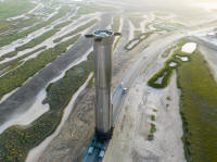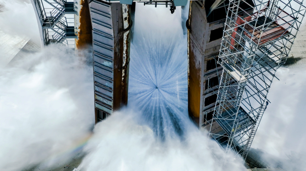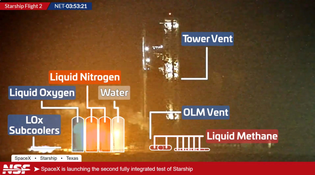 Le premier test du nouveau système de déluge par eau installé sous le pad OLM est réalise le 13 juillet. Les nouvelles plaques d'acier ont été mise en place en mai. Des travaux de soutènement ont été entrepris sous l'OLM, avec des piliers en béton de 1,50 m de diamètre à couler. Essais du système de déluge en pleine puissance, le 28 juillet Livraison du "dance floor" qui permettra l'accès aux moteurs Raptor lorsque le booster est sur l'OLM Le booster B9 est déplacé sur le pad fin juillet pour des essais de remplissage en ergols, puis pour un tir statique le 6 aout avec l'allumage de 29 moteurs sur 33 durant 2,79 s. L'occasion de tester en condition réelle les modifications apportées sur le pad notamment concernant le système de déluge par eau complètement refait. Le booster est ensuite ramené dans sa baie pour la préparation de son vol, avec l'ajout du "Hot Stage Ring" qui permettra de tester une séparation avec le Starship S25 à chaud. Le B9 est de retour sur le pad le 22 aout et subit un autre tir statique le 25 durant 5 secondes. Test plutôt satisfaisant avec l'allumage des 33 Raptor, 2 se sont éteints prématurément. Prochaine étape, transport du Ship 25 et premier assemblage entre les 2 véhicules. 15 novembre, la FAA accorde le "go" pour le lancement du Starship, le 18 novembre à cause d'un changement d'un Grid fin sur le booster. La fenêtre de tir sera de 20 mn, dès 14h, heure française. IFT 2 18 novembre, le Starship décolle sans problème de son pad de tir, avec ses 33 moteurs Raptors allumés. Le booster se séparé après 2 mn de vol mais explose peu après (RUD Rapid Unscheduled Dissassembly), le second étage, le Starship continue son ascension jusqu'à 148 km d'altitude et une vitesse 24 000 km/h avant de s'auto détruire lui aussi. Selon Elon Musk: Nous avons perdu les données de la deuxième étape... ce que nous pensons actuellement, c'est que le système automatisé de terminaison de vol de la deuxième étape semble s'être déclenché très tard dans la combustion" Séparation du booster et du Starship