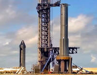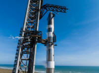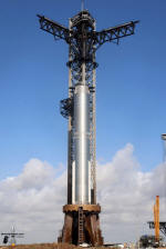 BFR, STARSHIP, LE SUPER LANCEUR DE SPACE X 2023 8 janvier 2023, le Booster B7 est transporté sur le pad de tir, suivit du SN24. 23 janvier, test de remplissage du B7, un Wet Dress Rehearsal ou simulation du compte à rebours sans aller jusqu'au T0. 10 février, le booster B7 réalise un tir statique de ses moteurs Raptor. 33 moteurs devaient être allumé sur le pad de tir, ont éteint 1 moteur juste avant le démarrage et 1 s'est arrêté. SpaceX annonce que l'essai s'est fait avec un peu moins de la moitié de la poussée maximale possible. Le 10 mars, le B7 est retiré du pad de tir. Il y retourne le 29 pour des tests de chargement en propergols. Début avril, le SN24 est mis en place sur le B7, puis redescendu pour mettre en place le système de destruction en vol FTS avant d'être à nouveau remis en place pour le premier vol orbital, prévu le 17. Space X tentera de lancer le Starship-SuperHeavy pour démontrer la capacité de lancement orbitale dans une trajectoire de type FOBS, avec monté à 160 km puis retour au bout d'une révolution. Le booster B7 reviendra se poser dans la zone d'exclusion marine prévue dans le Golfe du Mexique et le vaisseau SN24 amerrira dans l'océan Pacifique. Le 17 avril, le Starship B7-SN24 est prêt au lancement, le remplissage en propergols commence mais le décollage est annulé une dizaine de minutes avant suite à un problème de pression de réservoir et la présence d'un bateau trop près des cotes. Le décompte continue, comme lors des répétitions et s'arrête à H-40 s.