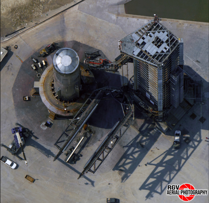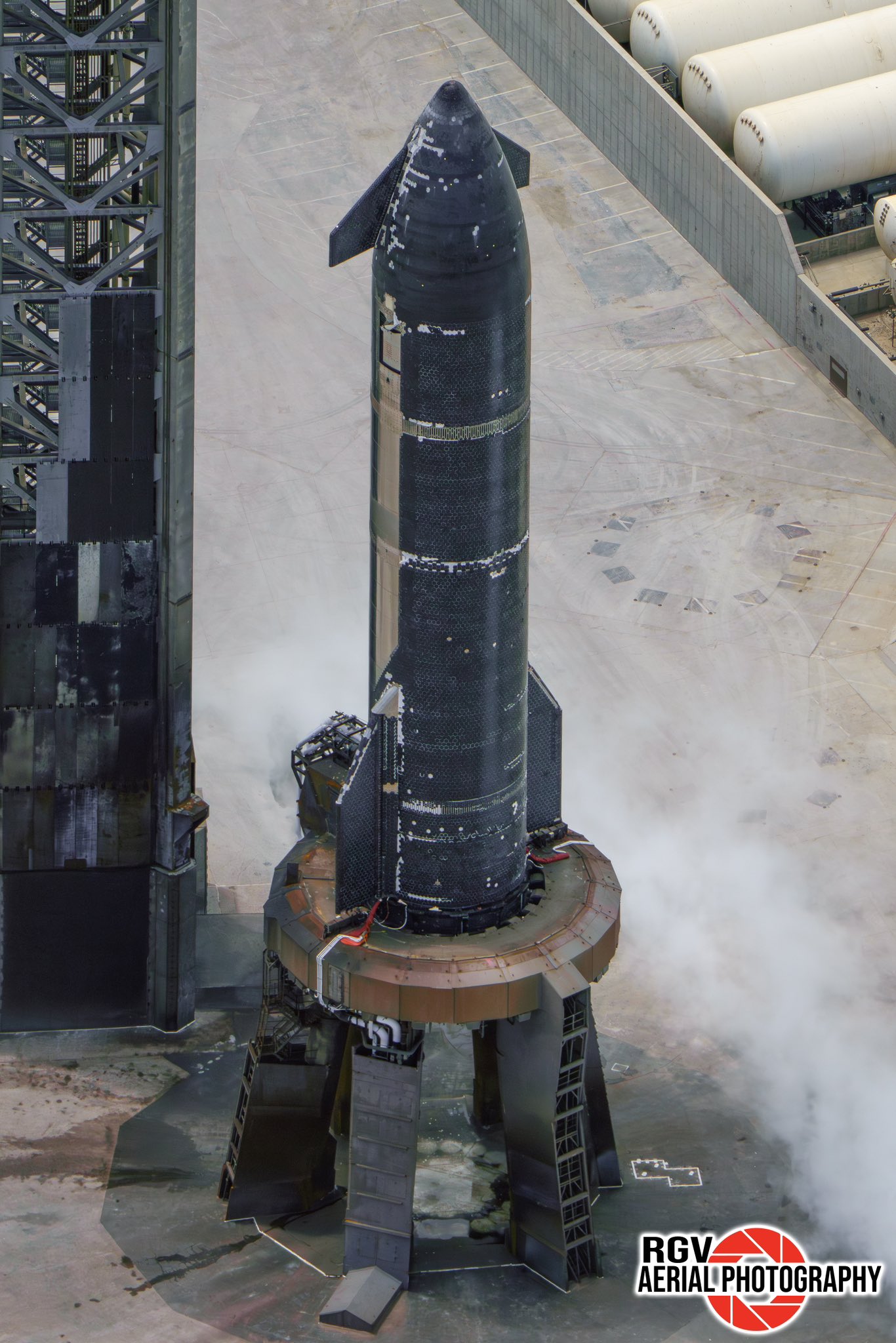 été temporairement ralentie alors qu'ils stockent. D'autre part, la FAA ouvre une enquête sur le vol du Starship et les dégâts causé par le lancement, même si le lanceur utilisait des propergols non toxiques et (...) a dispersé beaucoup de poussière, "mais à notre connaissance, il n'y a pas eu de dommages significatifs pour l'environnement." Après le vol du B7, c'est au tour du Booster B9 de prendre la relève avec le Starship S25. Le B9 est le premier booster à utiliser des actionneurs électriques TVC (Thrust Vector Control) au lieu d'hydrauliques. B9 est également le premier booster à utiliser le hot-stage. Cela signifie que pendant que les moteurs du navire sont allumés, celui-ci repose toujours sur le booster. Selon Elon Musk, en utilisant cette méthode, la capacité de charge utile est augmentée de 10 %. Pour éviter que le B9 ne soit détruit par les moteurs du navire, une section supplémentaire, "hot stage ring" sera ajoutée au-dessus du B9 avec des évents pour l'échappement des moteurs et un blindage du dôme avant. 26 juin, tir statique des 6 moteurs Raptor du S25.