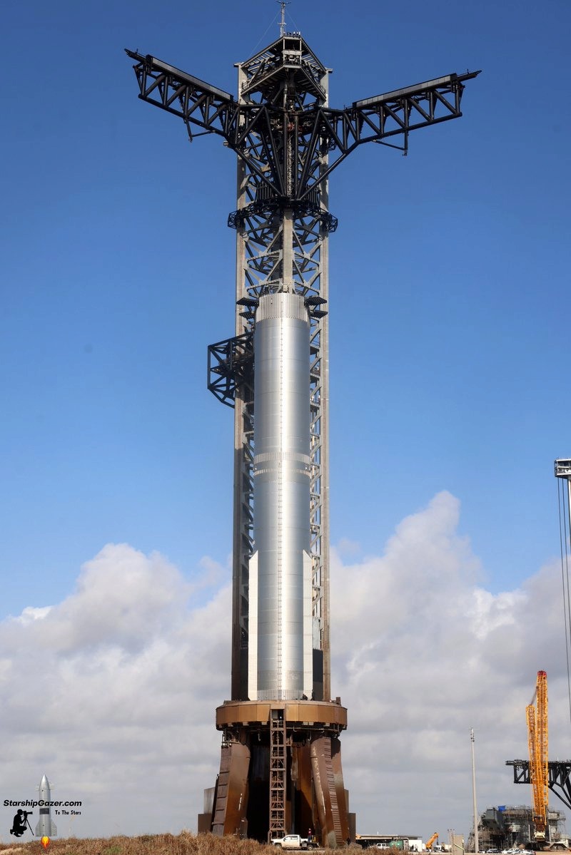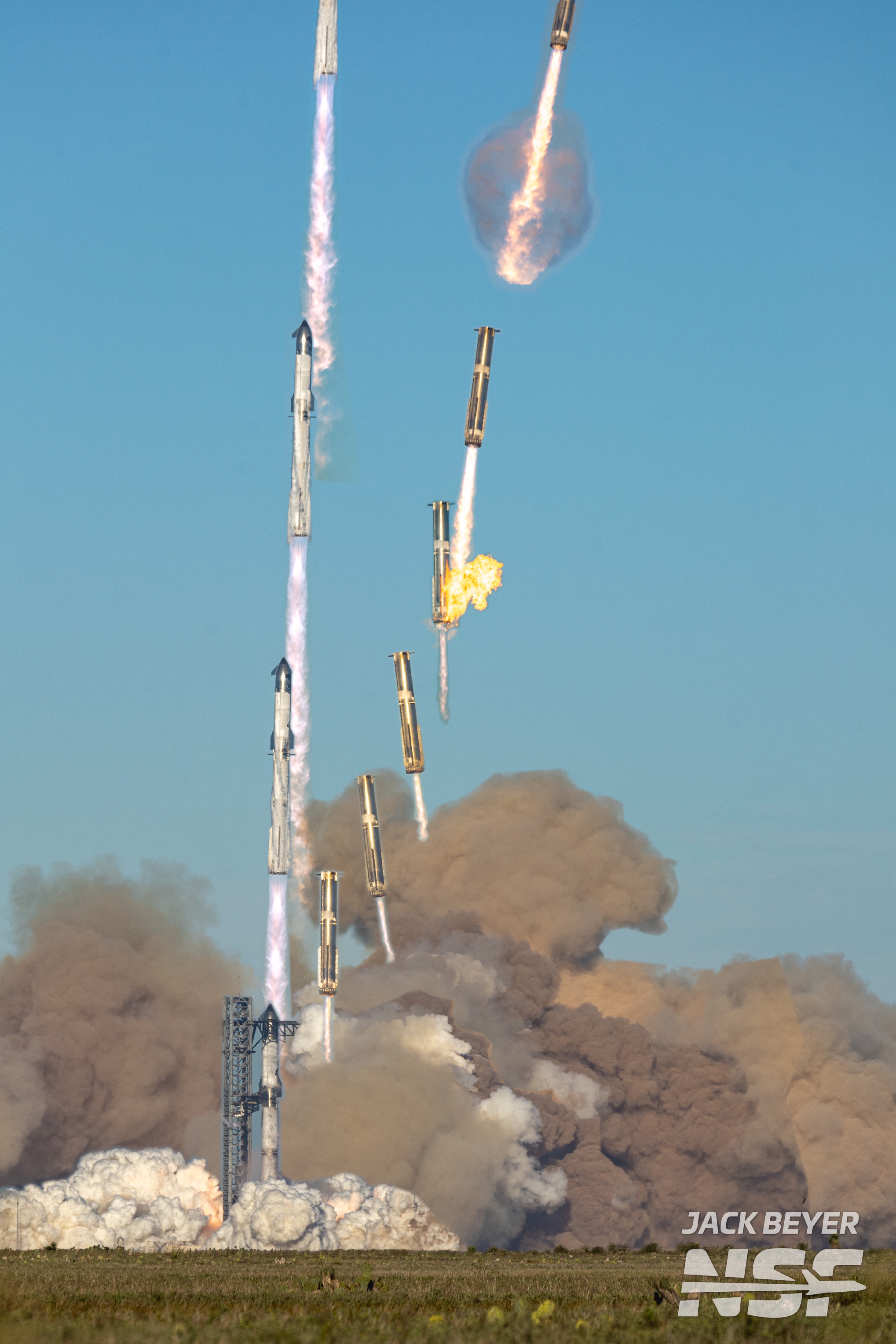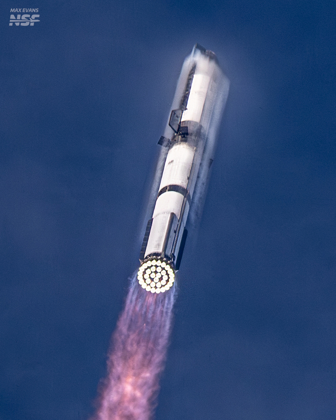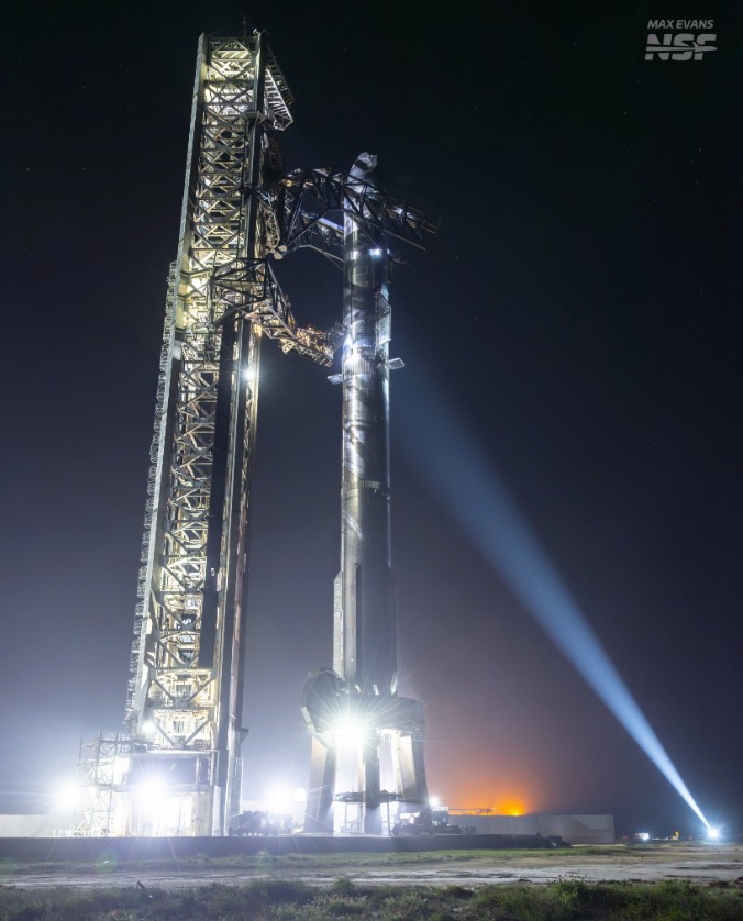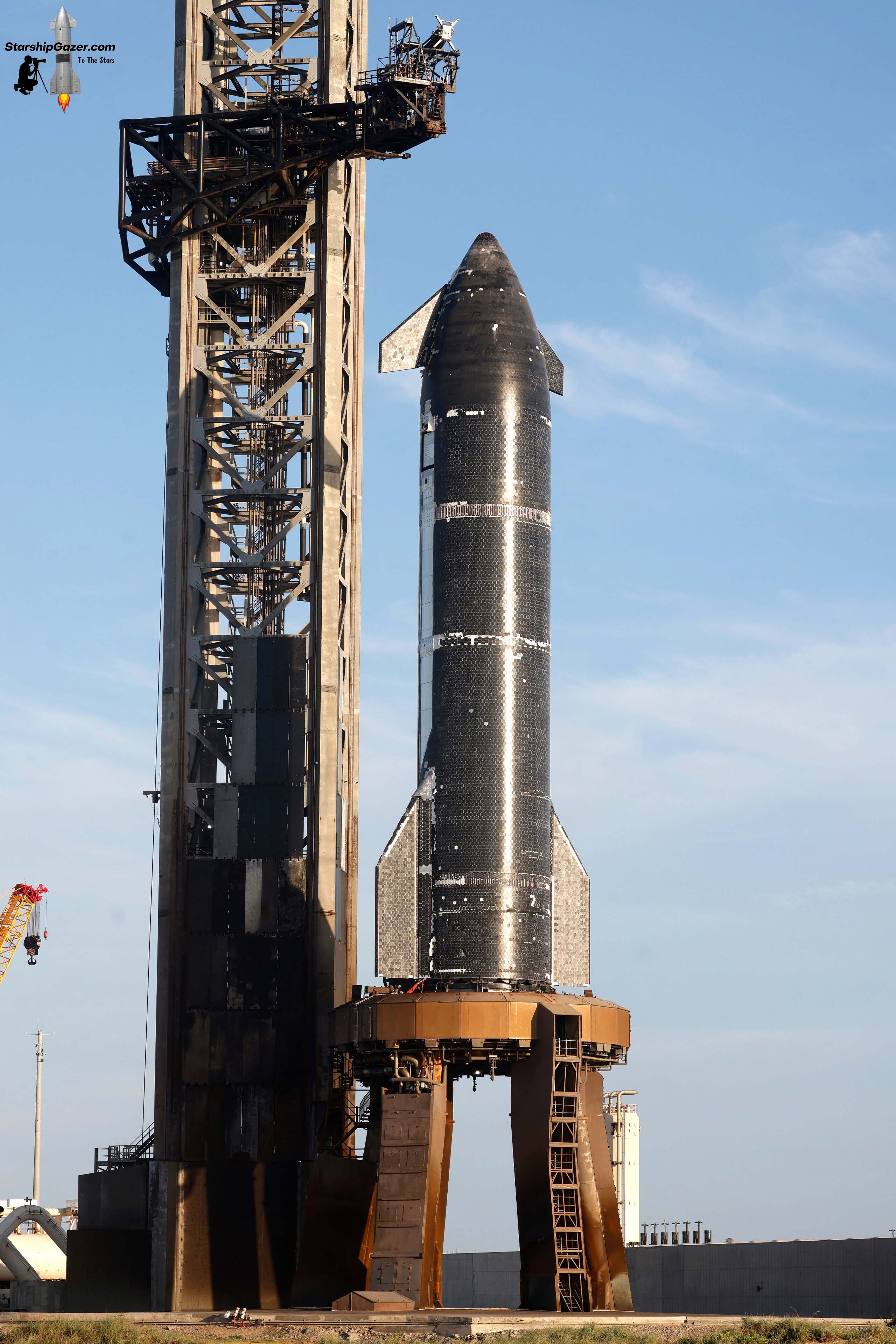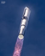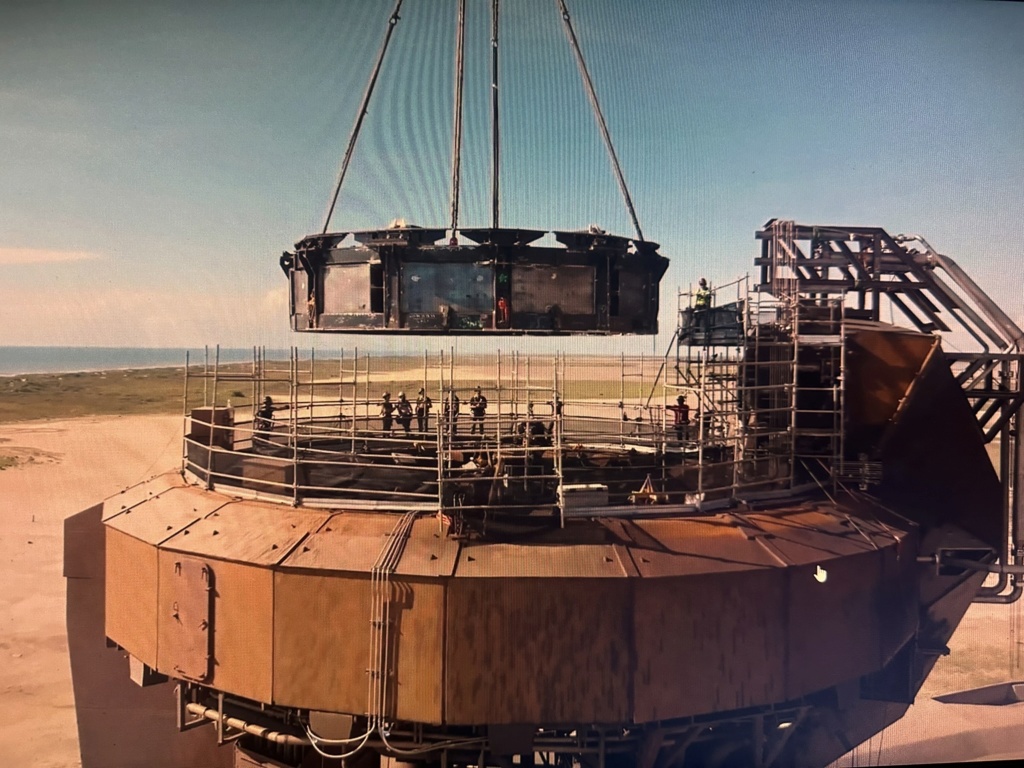 séparation. Il y a beaucoup de questions concernant la phase de "suicide burn" (freinage final du premier étage) et sa sécurité. Sur les Falcon 9 le premier étage vise d'abord la mer et après l'allumage vient se décaler sur le point d'atterrissage. Sur le Super Heavy le freinage se fait bien plus tard, vers 1000m d'après le live de NSF. Sur leur live ils parlaient de la possibilité que le SH vise le golfe, la plage ou un point au sol sur leur propriété, puis dévie vers la tour. La tour Mechazilla est située à 600m de la mer, ce qui signifie au choix: un point d'impact initial au bord de la plage, ou un point d'impact initial dans la lagune, puis un décalage assez marqué vers la tour. Dans les deux cas on devrait avoir un joli spectacle, si le SH atterrit proche des caméras...Ils parlent également d'une validation manuelle pour la manœuvre, en plus des ordinateurs de bord. Pour le vol IFT 6, ce sera le dernier vol du Starship V1, en l'occurrence le S31, le prochain sera le S33. Le Booster B13 arrive sur le pad le 22 octobre et le tir statique a lieu le 25.