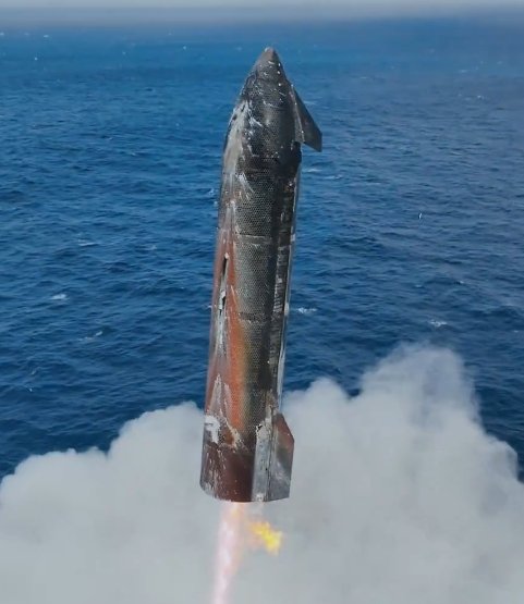 2 avril, hot fire du B14-2 IFT 9 Le vol IFT 9 a lieu le 27 mai 2025, utilisant le Booster B14-2, celui même qui a vole pour le vol ITF 7 en janvier avec 29 moteurs Raptor "éprouvés" et le Starship S35. Le B14 ne réussit pas à revenir au sol (12 des 13 moteurs se sont rallumés mais se sont tous éteins par la suite) et se disloque en mer. Le S35 atteint l'orbite, mais une fuite de méthane dans le système de pressurisation autogène provoque une perte de contrôle d'attitude, empêchant le déploiement des simulateurs Starlink (en raison de problèmes de dépressurisation). Le Starship se désintègre lors d'une rentrée atmosphérique incontrôlée. 5 juin, tir statique du B14-2 19 juin, explosion sur le banc de test du S36 à Massey. Space X propose d'utiliser un anneau adaptateur sur le pad A pour faire les mises à feu du Starship. SpaceX prévoit actuellement de reconstruire le pas de tir 1 après les derniers lancements de Starship V2 selon le modèle du pas de tir 2. A priori tous les lancements de Starship 3 en fin d’année et une bonne partie de 2026 (si ce n’est plus) seront à partir du pas de tir 2 (+ LC39A quand ça sera fini). Juillet, selon Musk, le vol ITF 10 aura 3 semaines de retard. Le Ship S36 prévu pour ITF 10 ayant explosé sur le site de Massey, il a été remplacé par le S37, prévu initialement pour ITF 11. Le vol IFT 11 aura le Ship S38. 1er aout, tir statique du Starship 37 sur le pad 1 et essai "spin prim" le 13 aout IFT 10 Le vol IFT 10 a lieu le 26 aout 2025 avec le Starship S37, Bk2 et le premier Booster B16, Bk 2 également. SpaceX récupère pas le B16 lors de ce vol, ce qui entraîne un amerrissage brutal dans le golfe du Mexique . Le vaisseau 37 a déployé avec succès huit Starlink simulateurs. Il a ensuite effectué une démonstration de rallumage en vol d'un Raptor et a commencé sa rentrée dans l'atmosphère avec la bonne attitude. Un morceau du compartiment moteur s'est rompu sous l'effet des forces extrêmes, mais le vaisseau a poursuivi sa rentrée, effectuant plusieurs essais (par exemple, en sortant complètement ses volets pour réduire rapidement la vitesse ou en rentrant dans un angle d'attaque sous-optimal), puis a effectué son atterrissage sur le ventre, amerrissant doucement et chavirant. Le vaisseau a ensuite explosé dans l'eau.