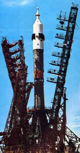 Mis en service en novembre 1966 pour lancer le nouveau vaisseau Soyouz sous le nom de Cosmos 133, le lance Soyouz sert pour la mise au point du Soyouz jusqu'en août 1968 (7 tests) et lance les vaisseaux Soyouz 1 à 18 (mai 1975). Lors du second vol d'essai le 14 décembre 1966 avec Cosmos 136, le lanceur explose sur le pad de tir suite à un incendie. La tour d'éjection fonctionne bien et le vaisseau inhabité est récupéré. Longtemps les lanceurs soviétiques de la série A a été mystérieux pour les occidentaux. De nombreuses spéculations ont couru avant que ne soit révélé le "lance Vostok" en 1967 pour le salon du Bourget à Paris. Pour le lance Soyouz il faudra attendre octobre 1968 pour voir une première photo du lanceur sur son pad et ainsi en conclure que c'était un lanceur Vostok de base avec un nouveau troisième étage. L'étage de base du R7 (7eme fusée ou Semiorka) est resté inchangé depuis 1955. Il brûle un mélange de kérosène et d'oxygène liquide. Le concepteur Korolev qui ne disposait pas à l'époque de la technologie nécessaire à la réalisation de moteurs très puissant contourna cette difficulté en assemblant des moteurs en faisceaux à l'image de ce que feront les américains sur le booster Saturn 1. Le premier et second étage sont ainsi accolés et non superposés et allumés ensemble au décollage. Les moteurs qui équipent ces deux
