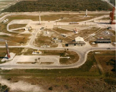 Le CCAF en 1967 avec au premier plan un Atlas vertical et au fond, le Titan 1 couché, le thor Able, l'Atlas E (couchée), le Jupiter et le "gantry" avec sa Redstone.