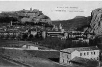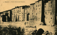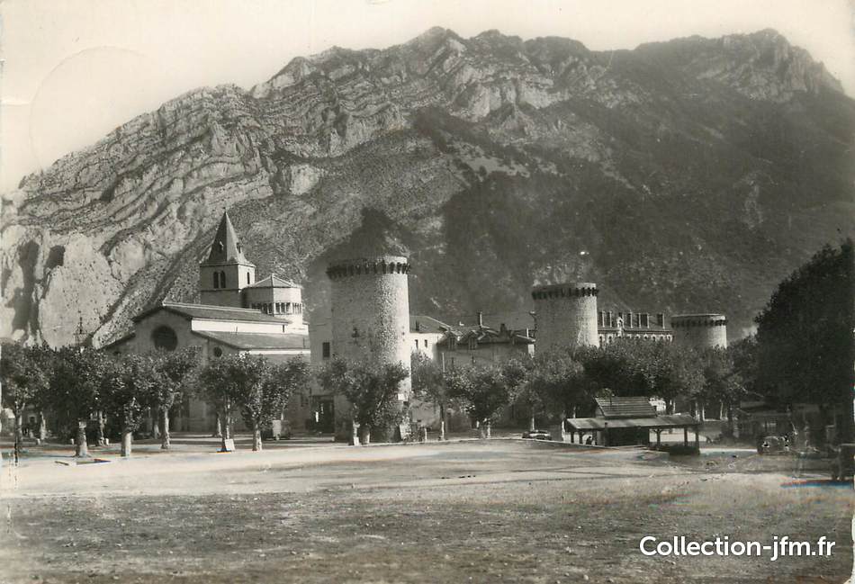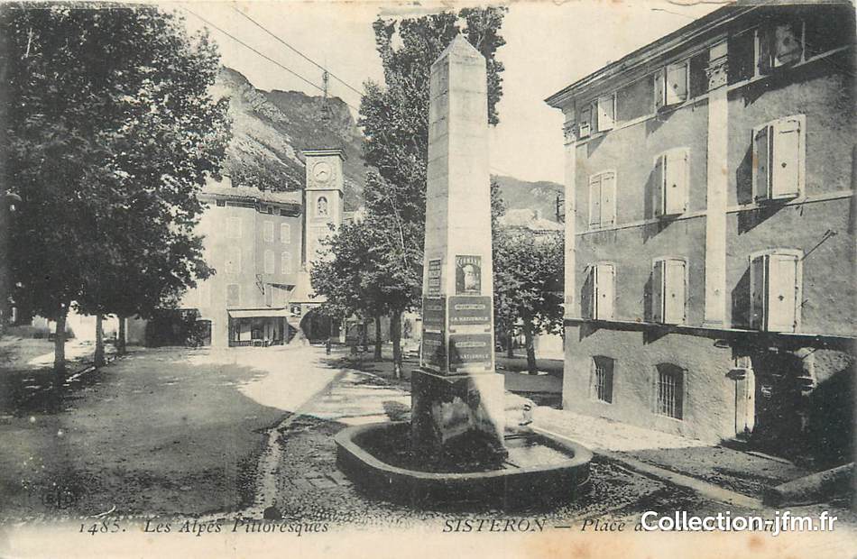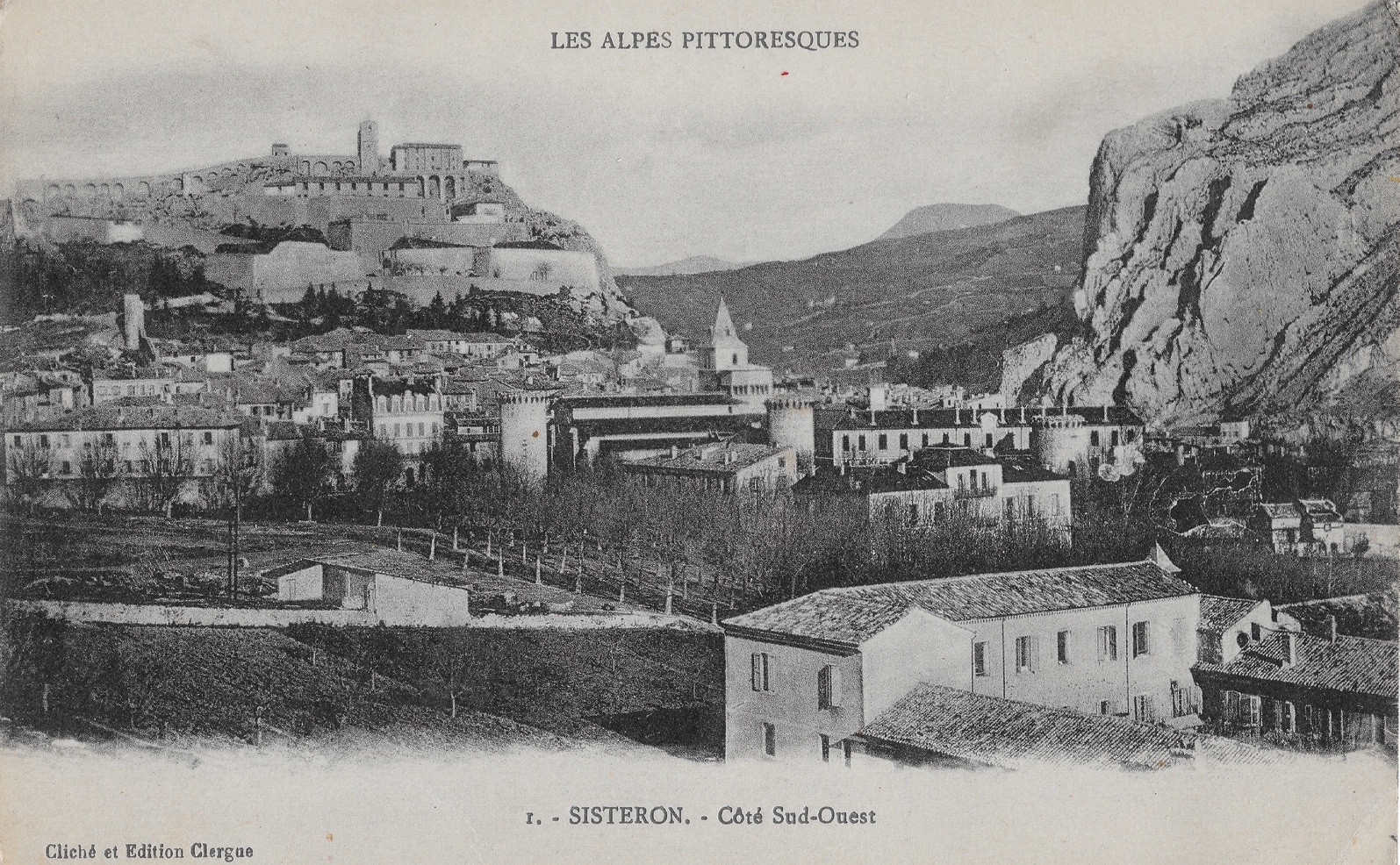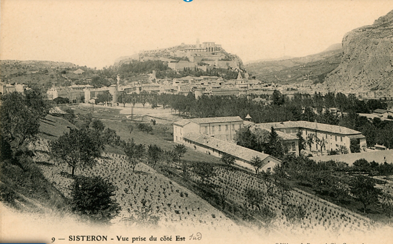 Alpes. Sisteron au début du 20e siècle. Le pré de foire avant la construction de la mairie. Au premier plan, les bâtiments de l'Hospice. Les commerces dans la première moitié du siècle à Sisteron sont essentiellement concentrés rue de Provence, rue Saunerie, traverse de la place (Paul Arène), place de l'hôtel de ville (Grand place) et la rue Mercerie. Il est très florissant et très varié comme le café du peuple, au bout de la rue Saunerie, il deviendra le "café du Dauphiné", le rendez vous des habitants de St Geniez et La Motte du Caire ou la quincaillerie Turcan au bout de la rue de Provence ou encore l'hôtel du Cours au départ de la route de Marseille avec à coté un garage et sa station essence. La maison André se trouve rue Droite au milieu de celle ci où passe la route nationale aujourd'hui. Détruit par les bombardements, il s'installe à la place de l'actuel Bartex. A la place de l'actuel petit Casino de la rue de Provence se trouve la boutique "vins et spiritueux" de M Chauvin. Le magasin de laine "la Cigale" se trouve lui rue Droite haute. il y avait aussi 3 hôtels avenue de la gare, le "Guindon" (devenu la "Potinière") et le "Touring", crée en 1910 et les "Acacias", av Signavoux (monté du Thor). Au "4 coins" croisement de la rue Droite, Mercerie, Saunerie et Pardenrières se trouvent les magasins des "Rullan". Rue Droite, à la place de l'actuelle pharmacie "Rey" se trouve un magasin de meubles. L'hôtel de la Poste est à l'actuel magasin de maroquinerie (ex Claire Merlin). La rue de Provence est le centre ville, la première rue a avoir été construire "hors des murs" de la forteresse. Les premières constructions sont réalisées sur les remparts, avec les 2 tours aux extrémités, la tour du Fort au Nord près de la Citadelle et la tour des gens d'Armes. On y trouve toutes sortes de magasins, principalement des cafés. C'est aussi la rue des défilés musicaux et manifestations. La rue Droite est la colonne vertébrale de la ville. Comme son nom ne l'indique pas, elle n'est pas droite, mais en pente (du mot patois "drèche"). Depuis le moyen âge, elle relie la rue Saunerie à la porte du Dauphiné et la porte de Provence. Elle regroupe la plupart des commerces traditionnels, les artisans et les petits négociants. LA VIE EN 1939...Témoignages des anciens. L'Octroi, où l'on payait les droits de la ville se trouvait à l'entrée de Sisteron, porte de Provence devant la tour des gens d'Armes. Devenu le syndicat d'initiative, le lieu aujourd'hui est un WC public ! La partie basse de la ville est le quartier agricole. "A Bourg Reynaud ou à la Coste, c'était des paysans, ils avaient tous un âne, un morceau de jardin, une vigne", Sisteron, comme l'avait dit Paul Arène était une ville de Vigneron. Entre la rue Saunerie et le Bourg Reynaud, le dénivelé est de 3 étages. La Citadelle est un lieu ouvert à tous, les enfants y s'amusent au gendarmes et aux voleurs. Sur la partie Nord, dans le théâtre joue le dimanche après midi des pièces de théâtre 2 ou 3 fois dans l'été. Le pré de foire est le rendez vous de tous les gerbiers, les paysans apportaient leur gerbiers et on foulait. Le pré de foire sert aussi de lieu pour les foires avec les bestiaux. Là où se trouve l'actuelle mairie est un terrain de football et là ou se trouve la gare routière, un terrain de baskett pour les filles et les garçons, avec une équipe locale formée par le "Sisteron-Vélo". L'équipe féminine a été champion des Basses Alpes en 1941. Les hommes, eux jouent aux boules, de partout, sur le pré et dans la ville. A cette époque, pas de voitures ou presque... La musique et les danses sont très présentes avec le Quadrille Sisteronais, en présentation sur la grande place, actuelle place du marché, à coté de l'horloge. Le Corso lui défile pour les fêtes de Pentecôte, le long de l'actuelle poste, le dimanche avec ses chars. Il s'arrête pour la guerre et ne reprend qu'en 1947. On circule à vélo, en calèches et en voitures. Mais, il n'y en a pas beaucoup à cette époque. Au bar, on y va pour boire, mais aussi pour téléphoner, car eux seul l'on à cette époque. C'est un lieu de rencontre autour du "Pastis".